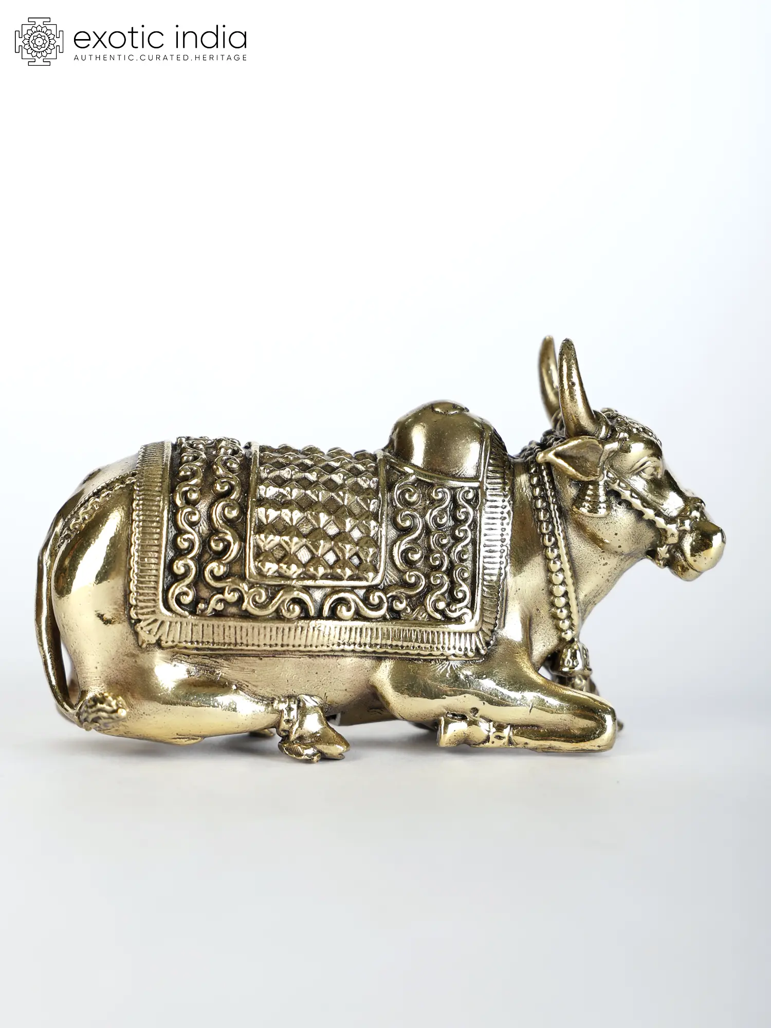 This brass statue serves as a beautiful piece of art and also as a reminder of the virtues of patience, loyalty, and unconditional devotion. For devotees and admirers alike, Nandi's figure inspires them to embody these qualities in their own spiritual journeys.