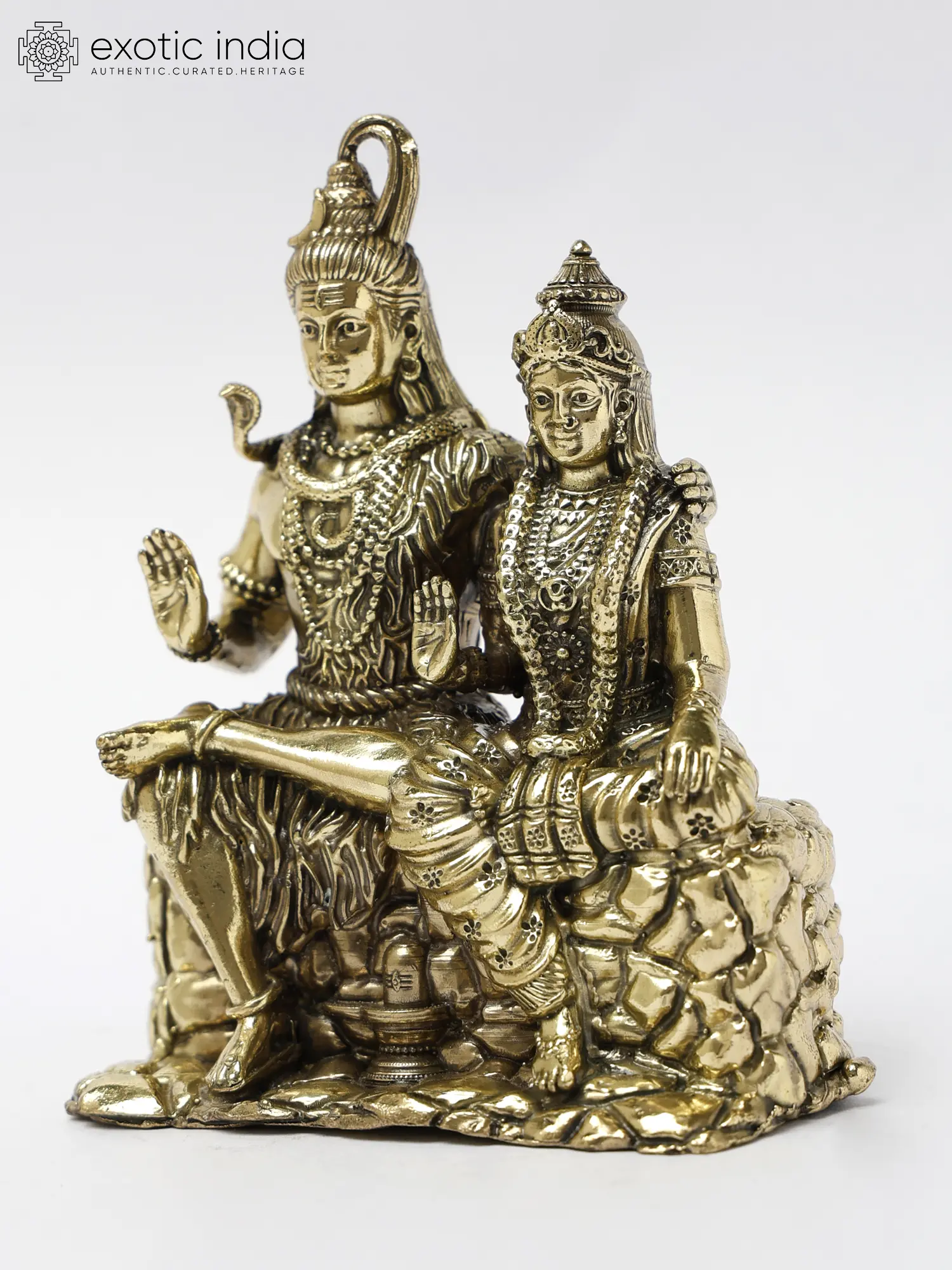 The brass statue of Small Shiva-Parvati Seated in a Blessing Gesture is a divine representation of Hindu mythology and spirituality. Depicting Lord Shiva and Goddess Parvati together, symbolizes the divine union of masculine and feminine energies, embodying harmony, love, and balance.