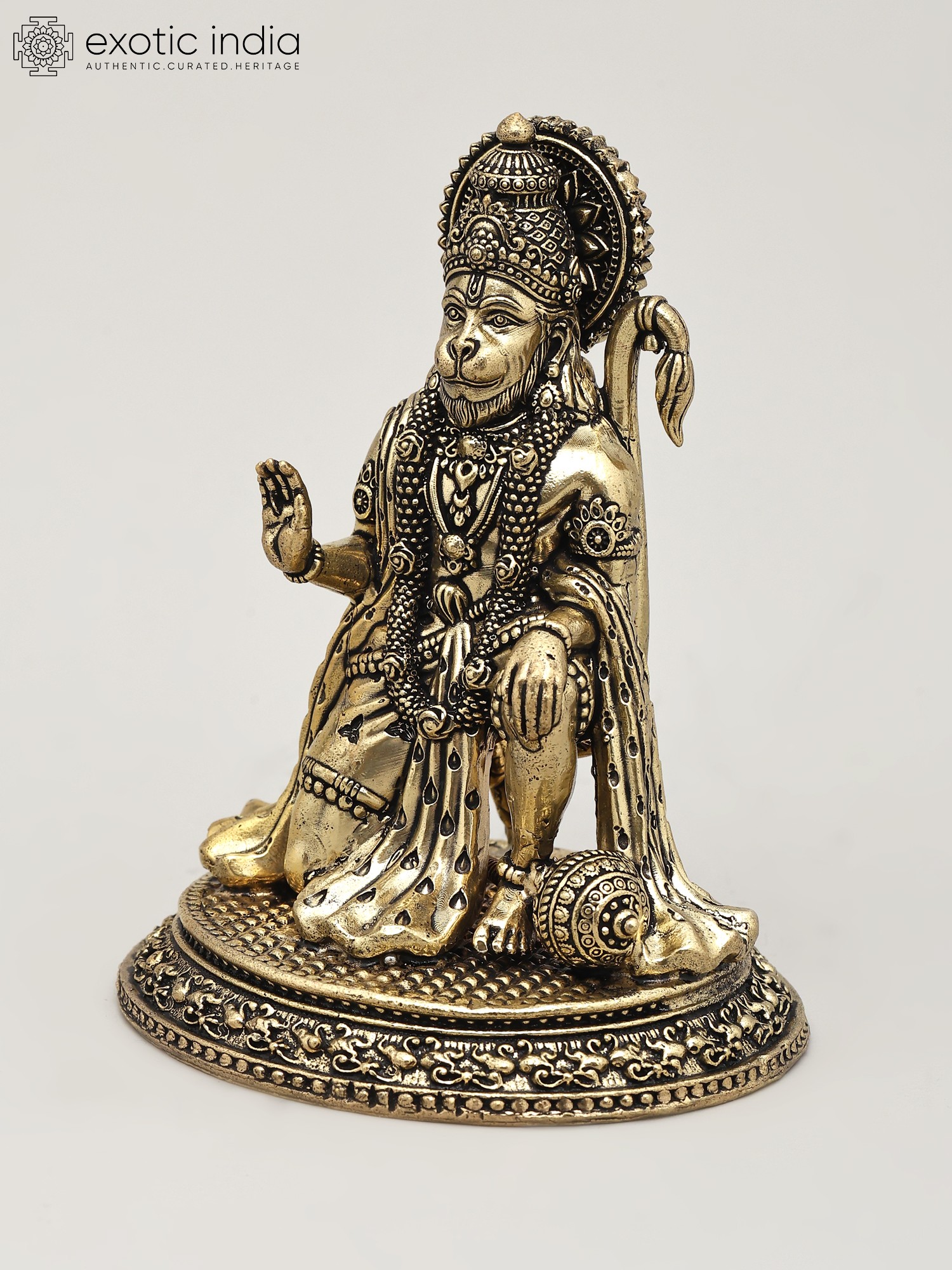 Superfine Sitting Lord Hanuman in Blessing Gesture | Brass Statue in Multiple Sizes
