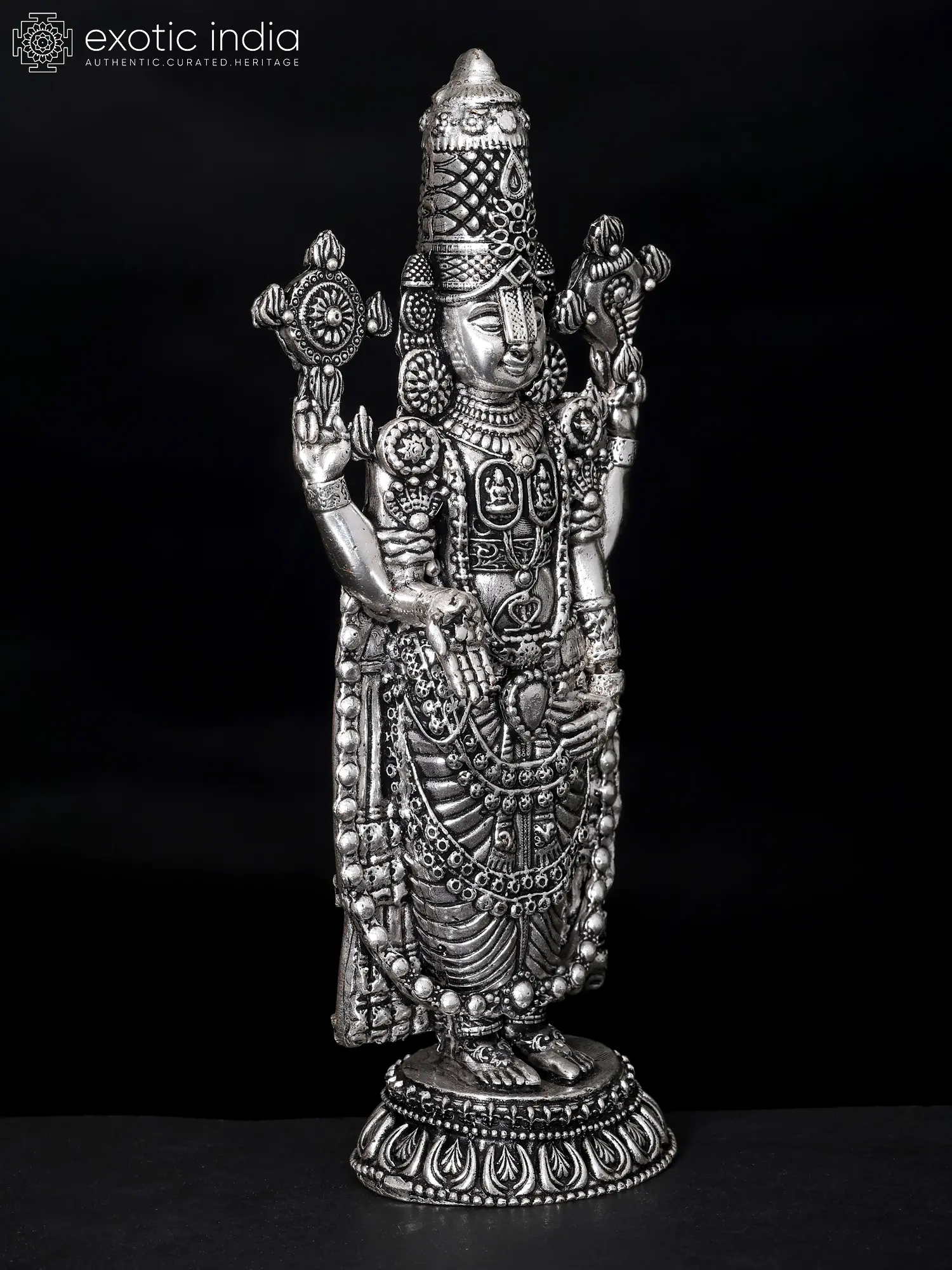 Chaturbhuja (four-armed) Balaji stands upright, with Bhudevi and Sridevi adorning his chest. Artistic finesse is showcased in the animation on Balaji’s face, infusing the surroundings with a sacred aura.