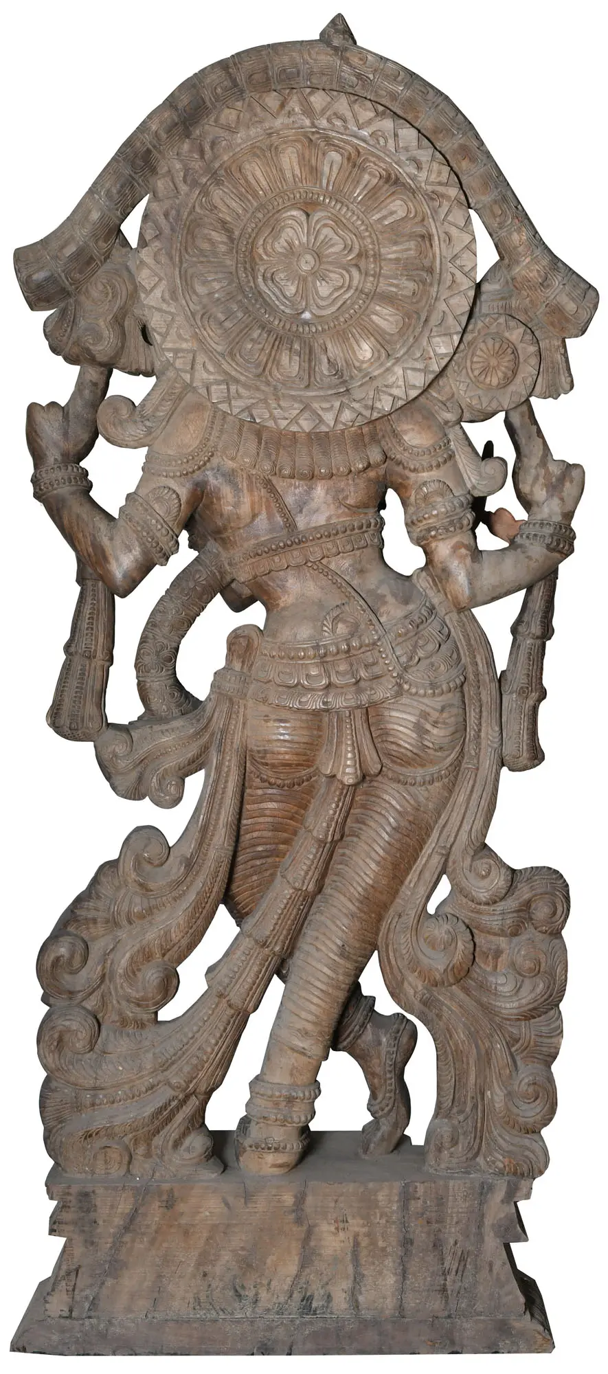 This exceptional piece is a prime example of South Indian temple wood carving, a craft that has been perfected over centuries. These carvings were traditionally used to adorn temple architecture, tell stories from epic scriptures, and serve as objects of devotion. The meticulous craftsmanship, the deep understanding of divine iconography, and the sheer dedication to detail are hallmarks of this sacred art form. The choice of wood and the traditional techniques employed in its creation imbue this sculpture with an authenticity that speaks volumes about its heritage. It is a rare opportunity to own a piece that is not only a stunning decorative item but also a repository of cultural heritage and spiritual significance. The colossal size of this carving ensures it will be a breathtaking centerpiece, radiating divine energy and artistic excellence.