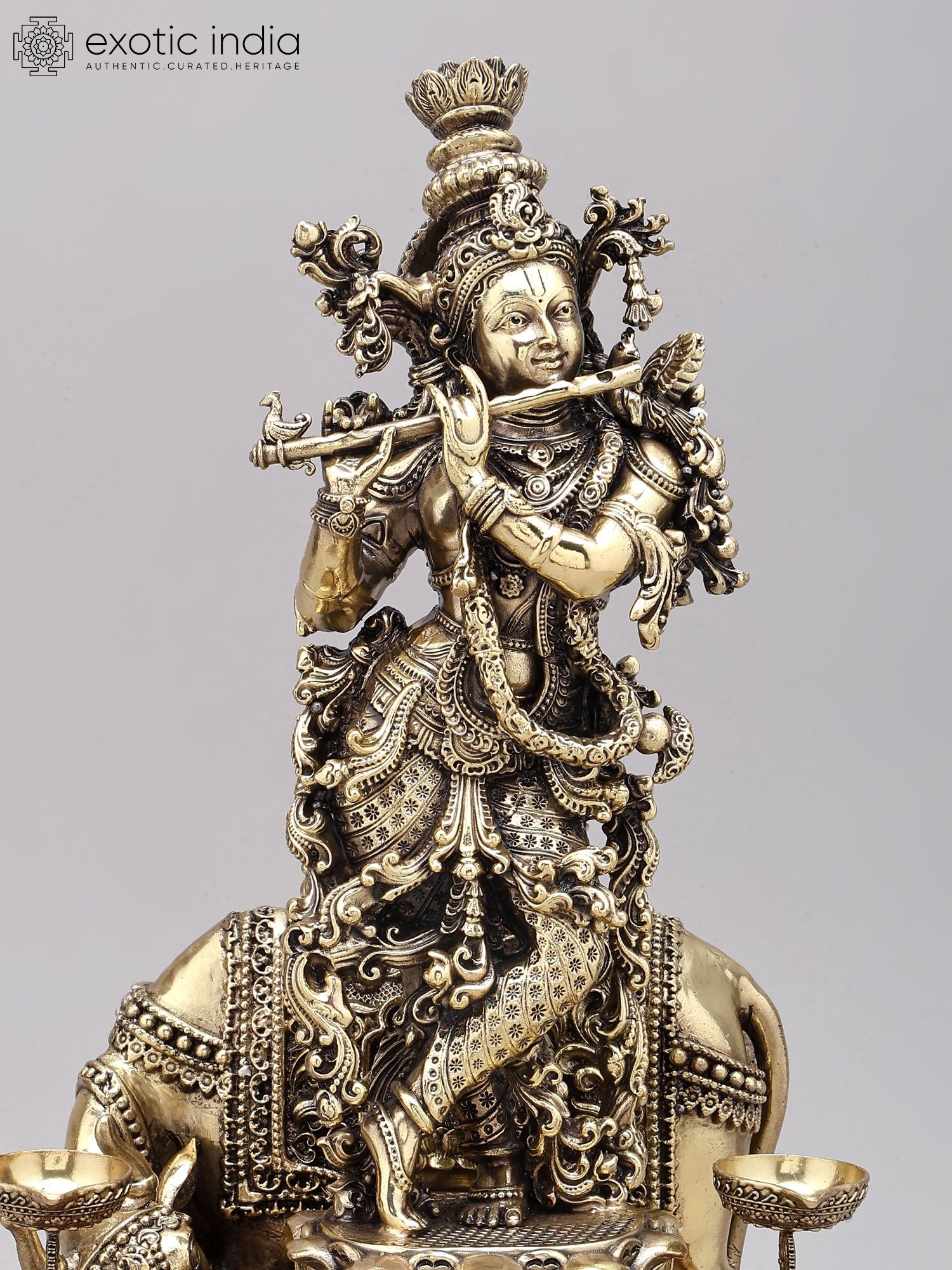 30" Cow Krishna Brass Statue In Brass | Handmade | Made In India