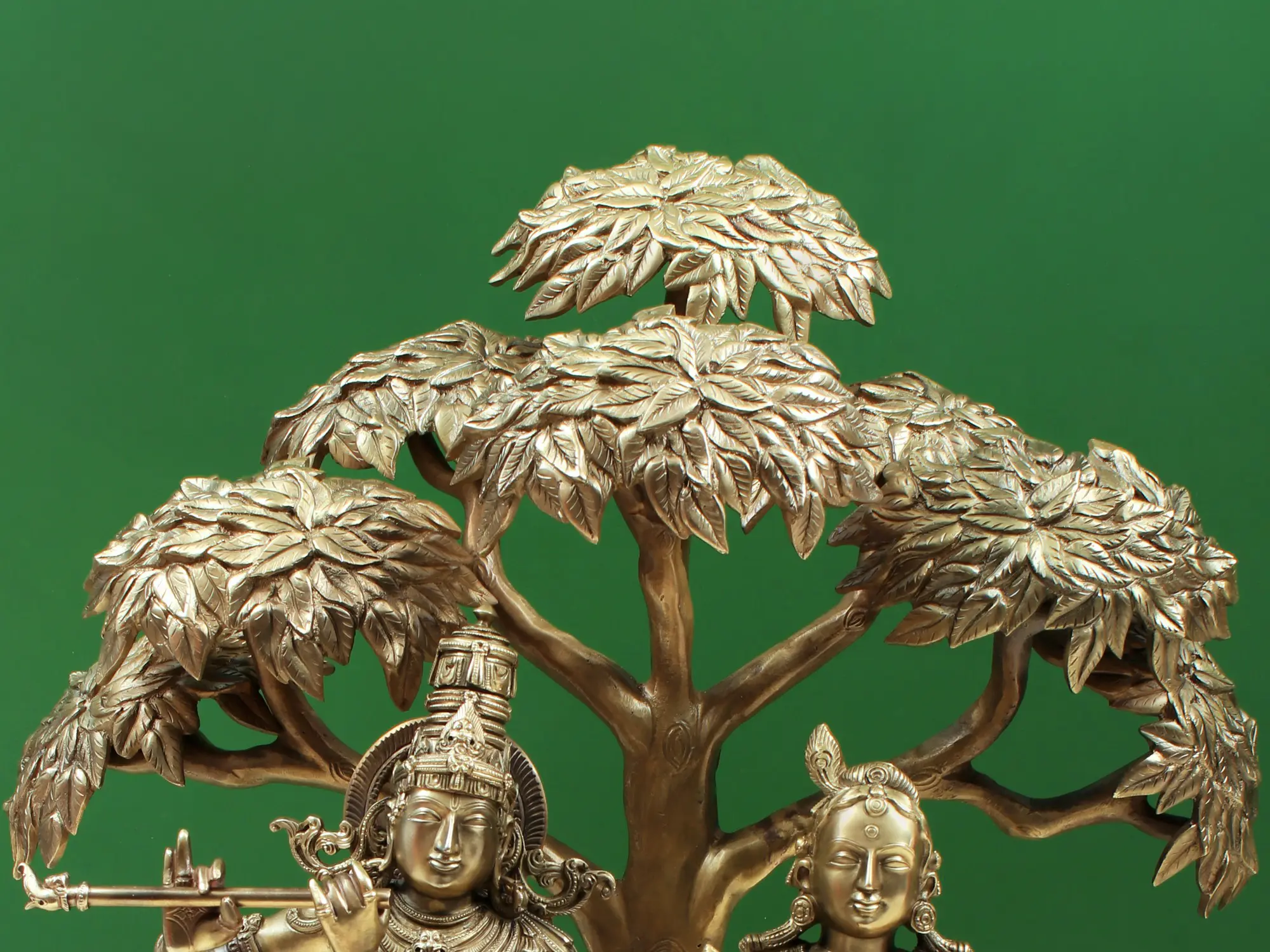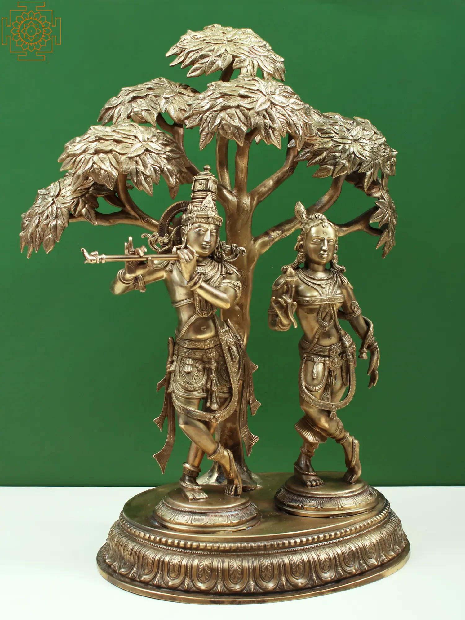 Complementing each other as a union of male and female perfection, Radha-Krishna in this bronze statue are a source of serene blissfulness.