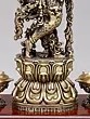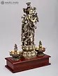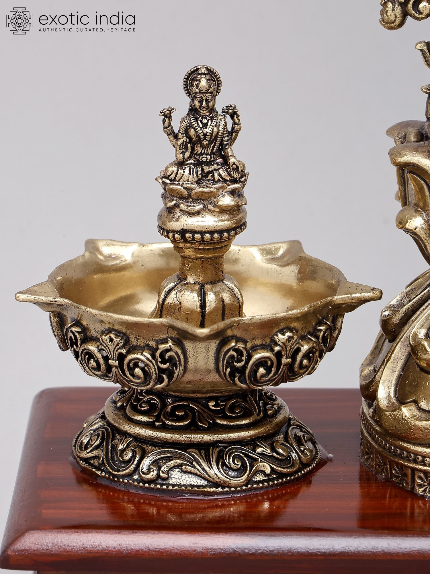 Designer Wood Framed Goddess Druga Statue in Brass with Lamps and Bells