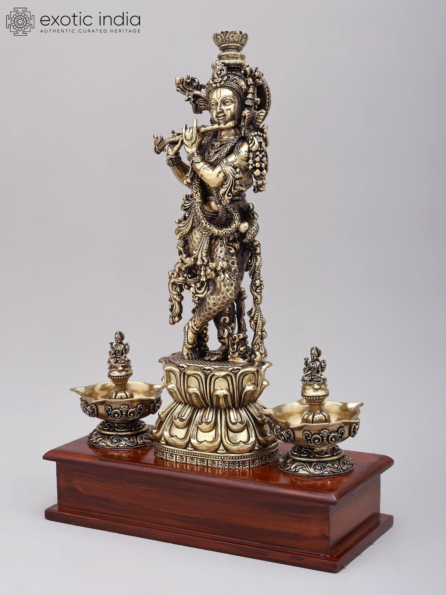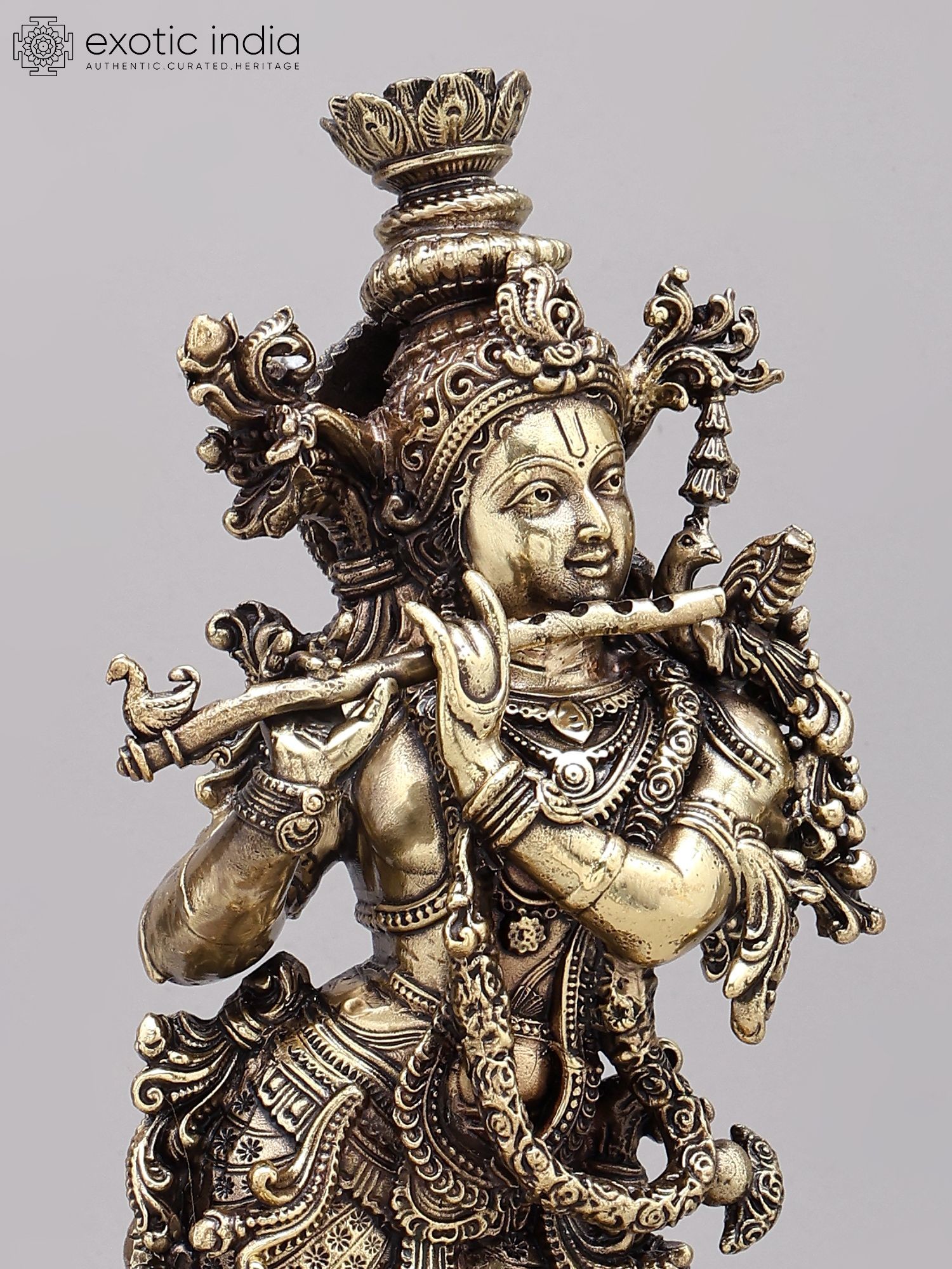 18" Brass Fluting Krishna | Handmade
