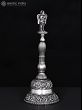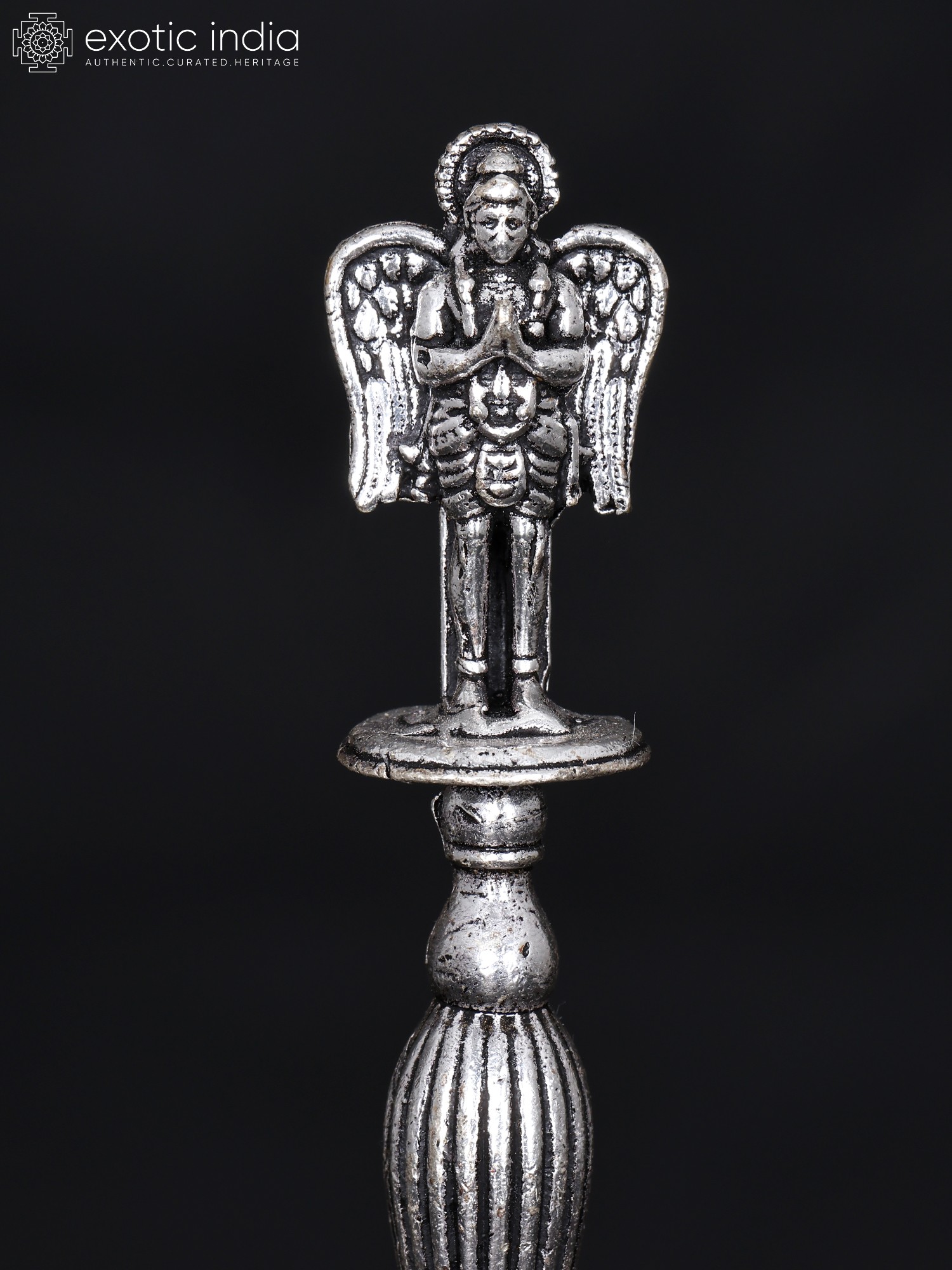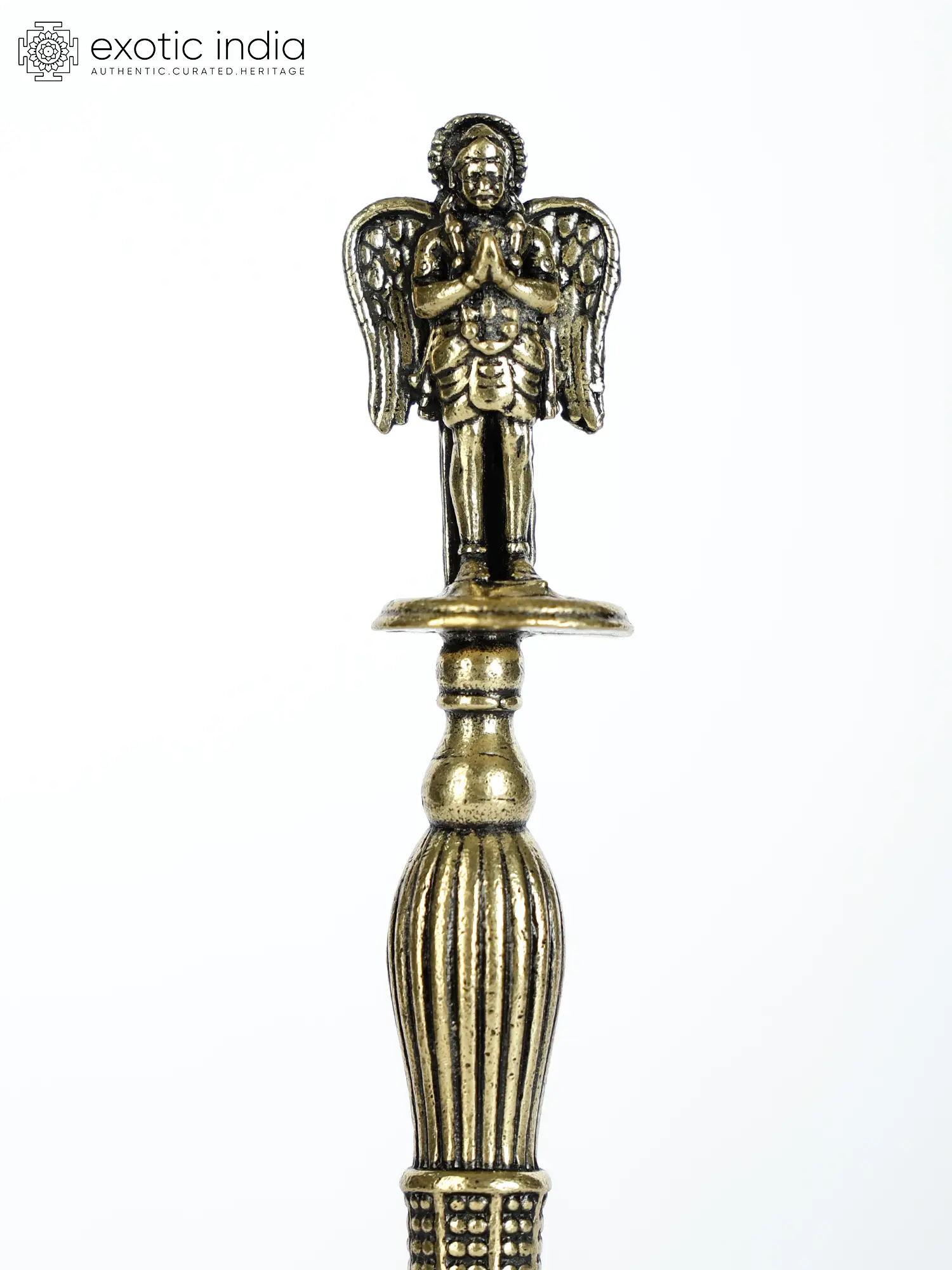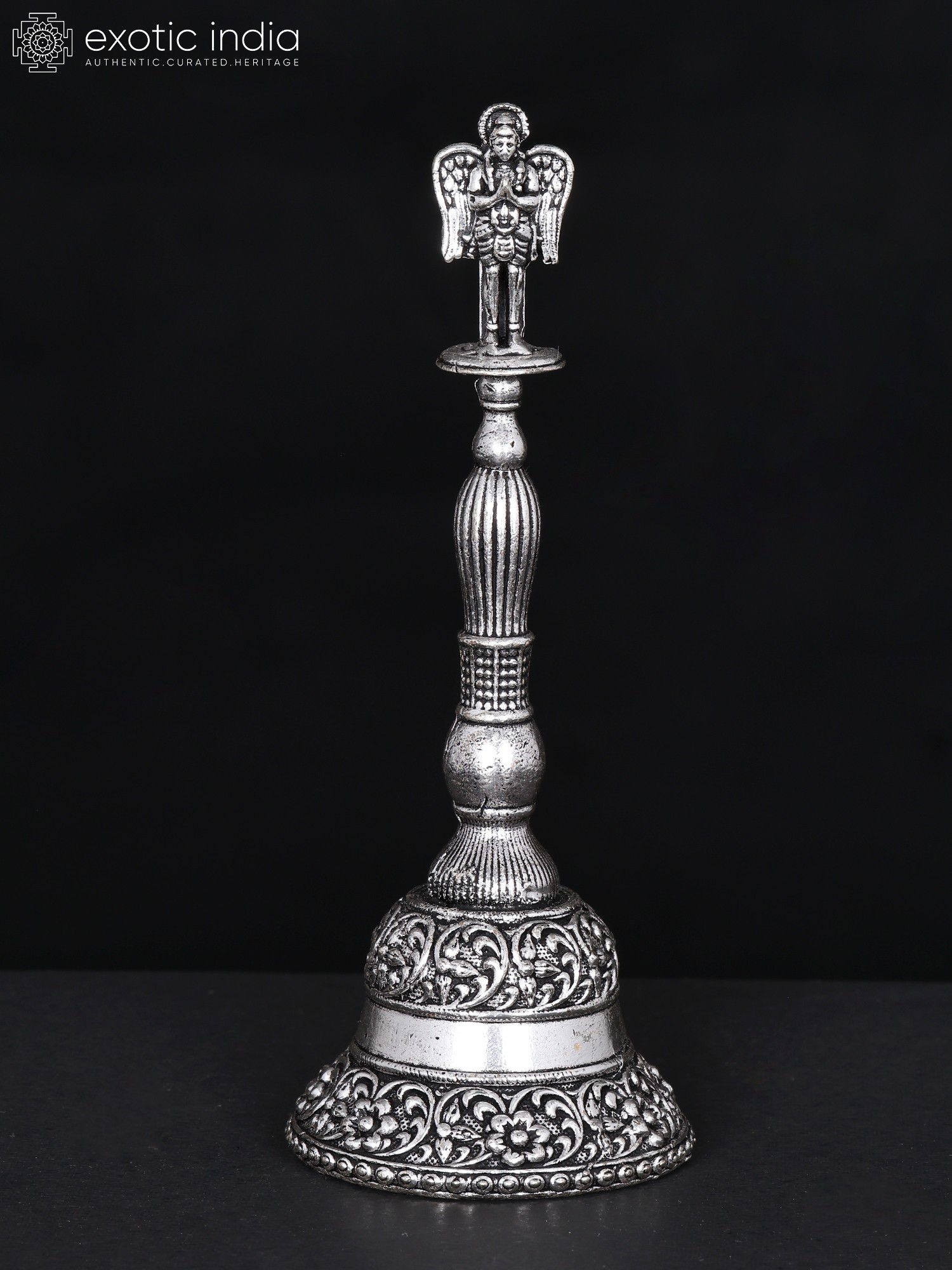 Designed in a very unique way and multiple different layers of motifs, the bell has a curved handle and the body is beautifully ornamented with decorative vines. On top of the bell, Lord Garuda stands promising protection and peace in a namaste stance.