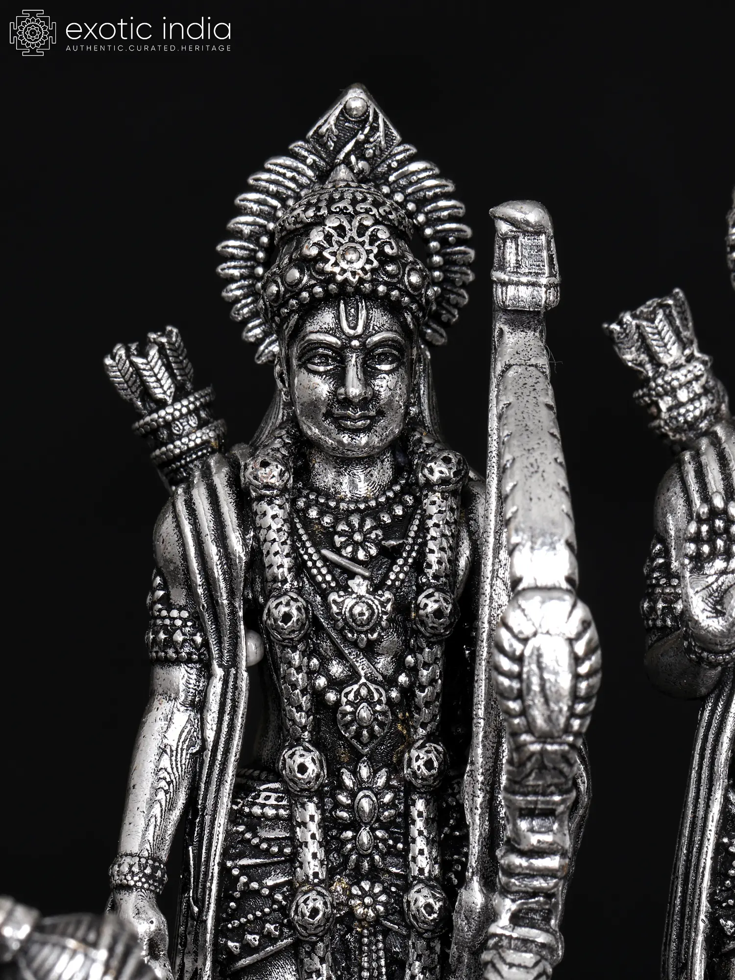 This Superfine Shri Rama Darbar brass statue showcases exquisite sculpting, creating a perfect court of Sri Rama for a home Puja temple.