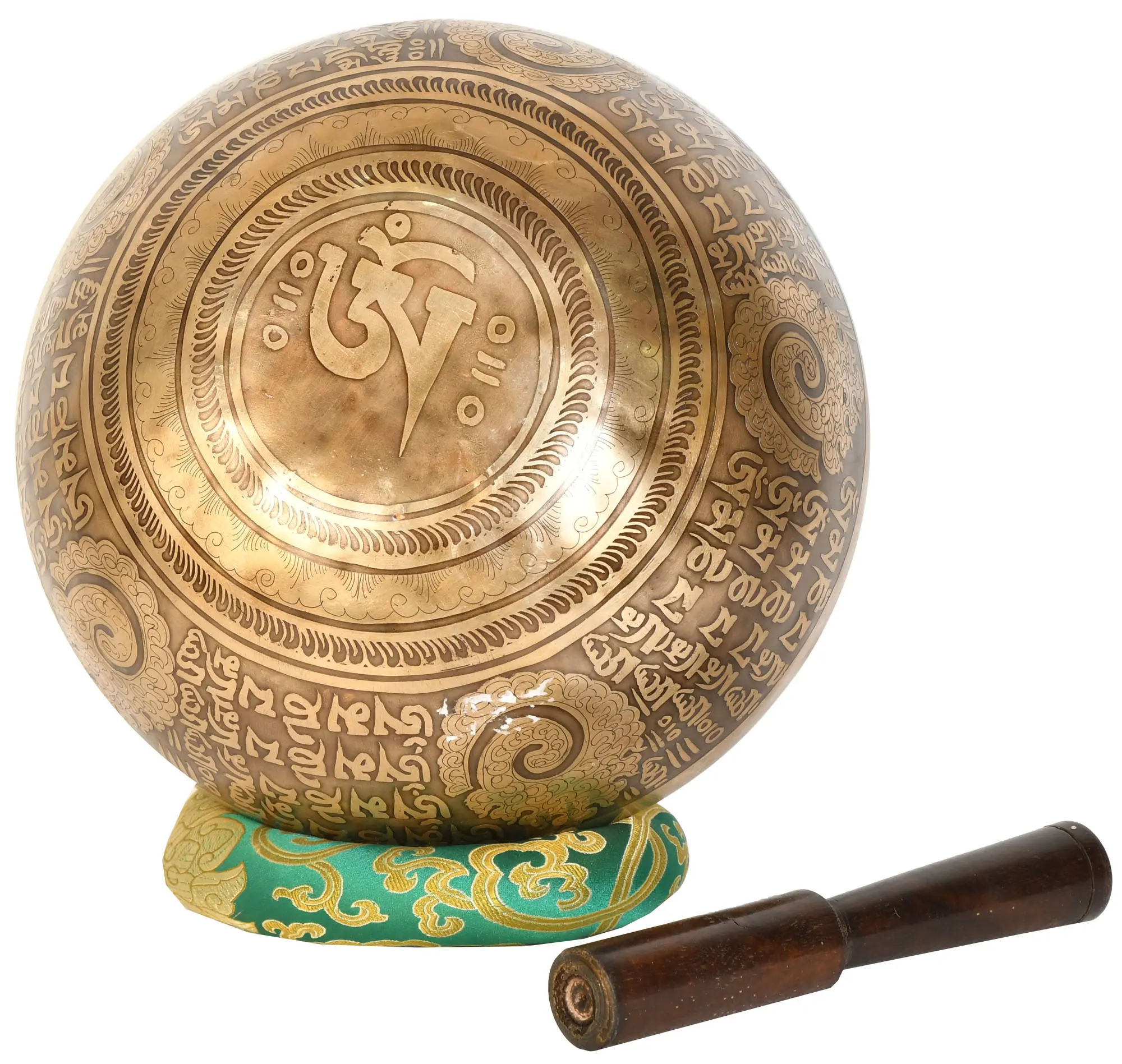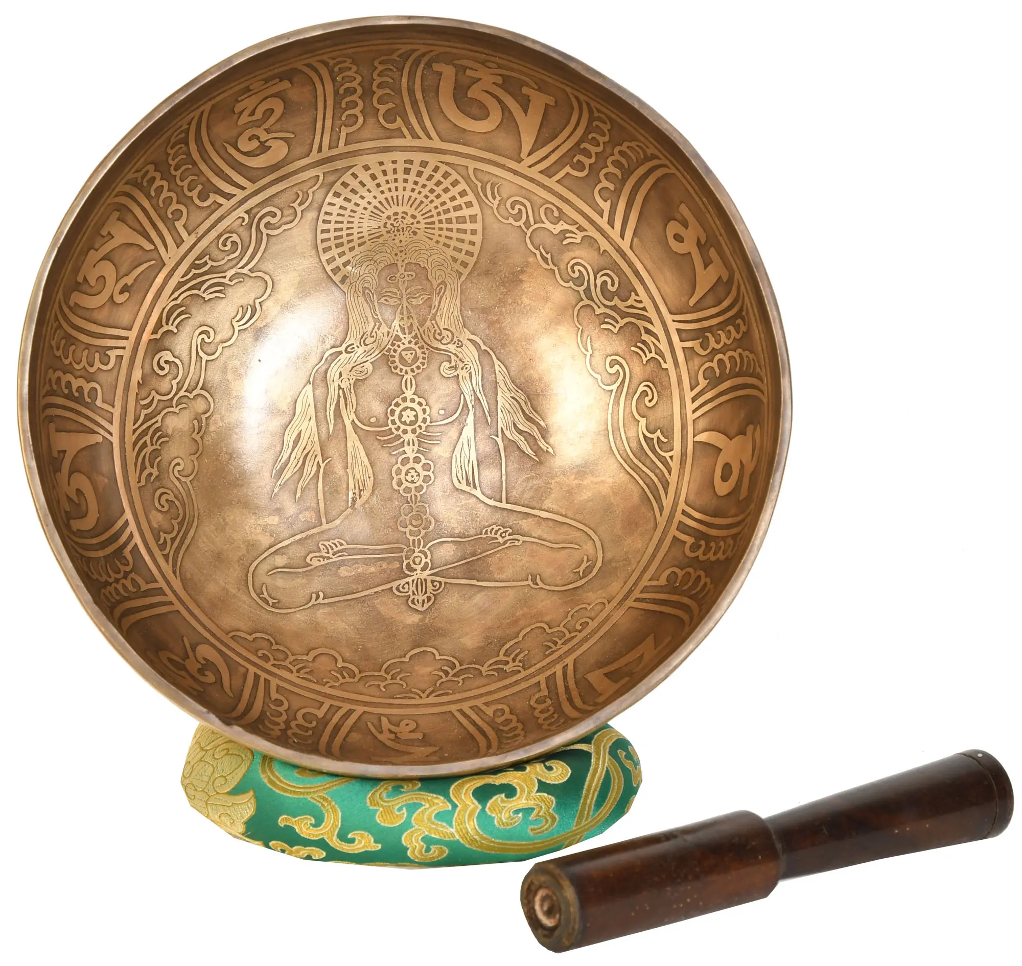 Superfine Singing Bowl with Kundalini Chakras and Auspicious Mantras Inside - Tibetan Buddhist (Made in Nepal)