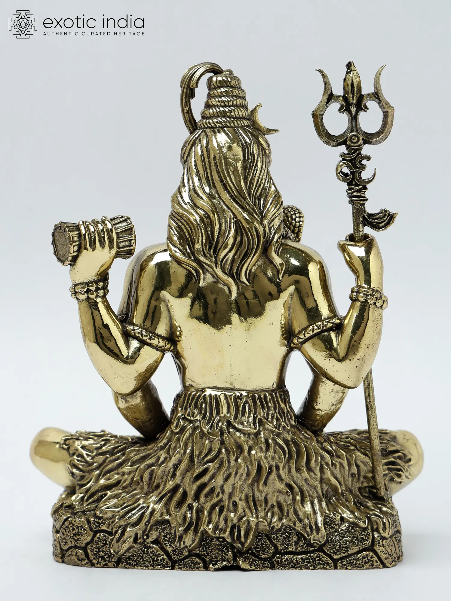This Superfine Sitting Lord Shiva Brass Statue portrays the divine deity in his Chaturbhuj form, representing his omnipresence and power. With one hand holding the Trishul and the other the Damru, Lord Shiva displays his roles as the destroyer of evil and creator of rhythm and time. His two lower hands are in the Dhyani mudra, symbolizing meditation and inner peace.