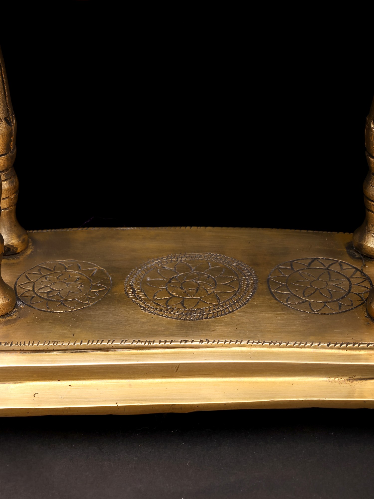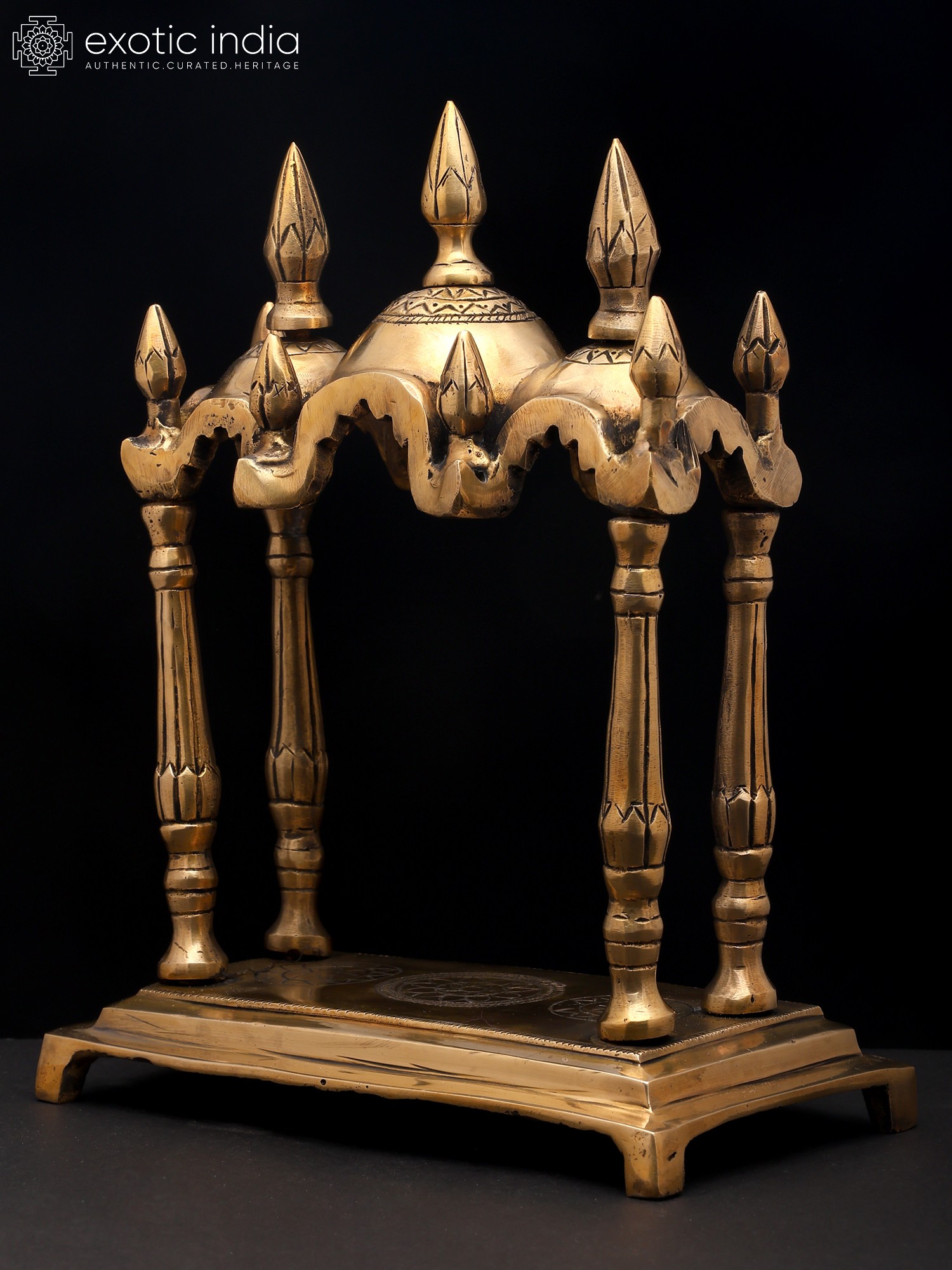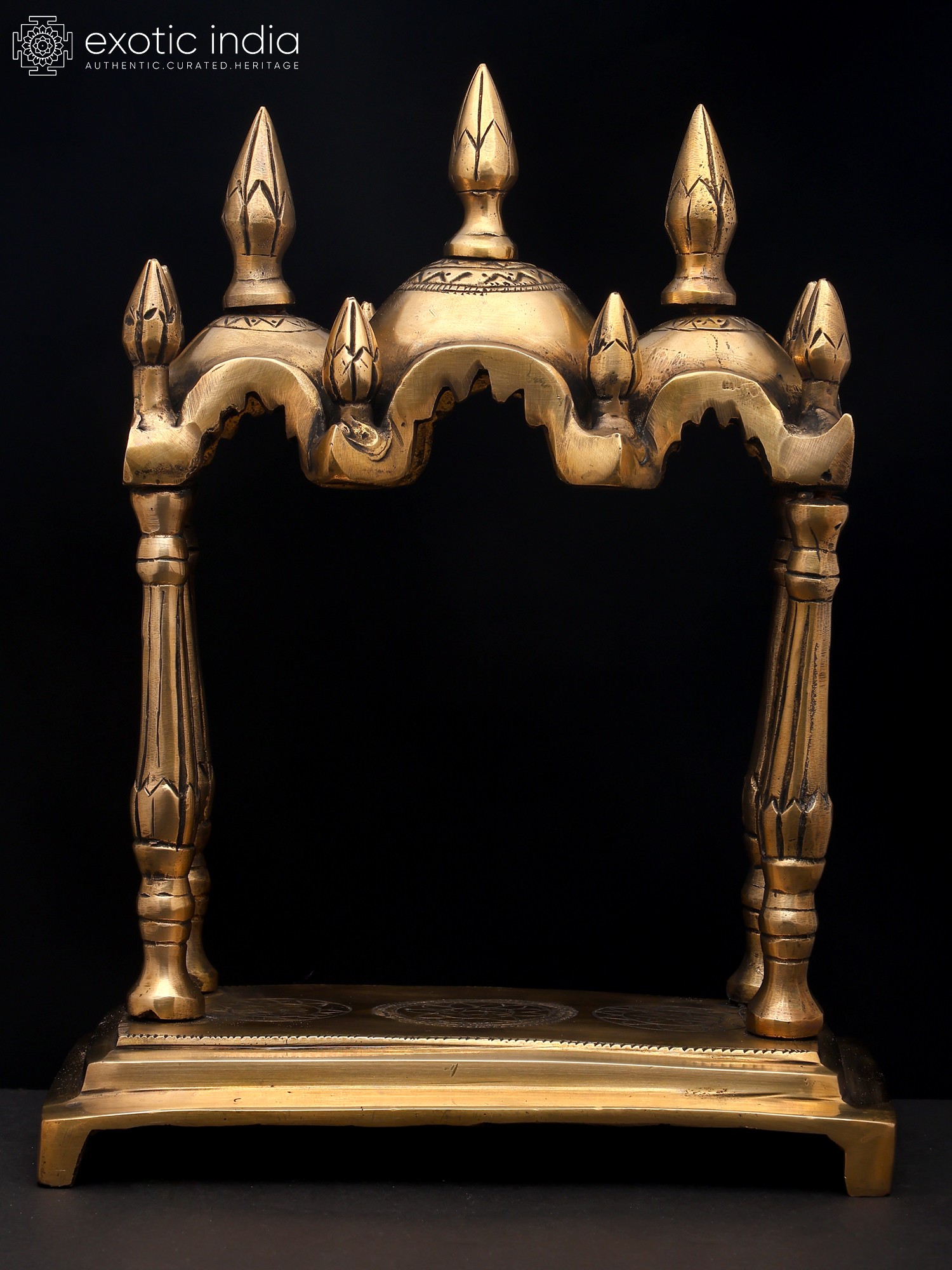 This three-arched temple is ideally suited for your personal puja room, altar, or any corner of your home where you seek to create a serene and sacred atmosphere. It serves as a beautiful and dignified pedestal for your idols or photographs of revered figures. The intricate detailing and the radiant brass finish make it a captivating piece that draws the eye and encourages quiet contemplation. As you place your deities within its embrace, you are not just adorning your space but creating a tangible link between the earthly and the divine, a sanctuary where prayers can ascend and blessings can descend. This temple is a testament to the enduring power of faith and the beauty of devotion, a timeless piece that will be cherished for years to come.
