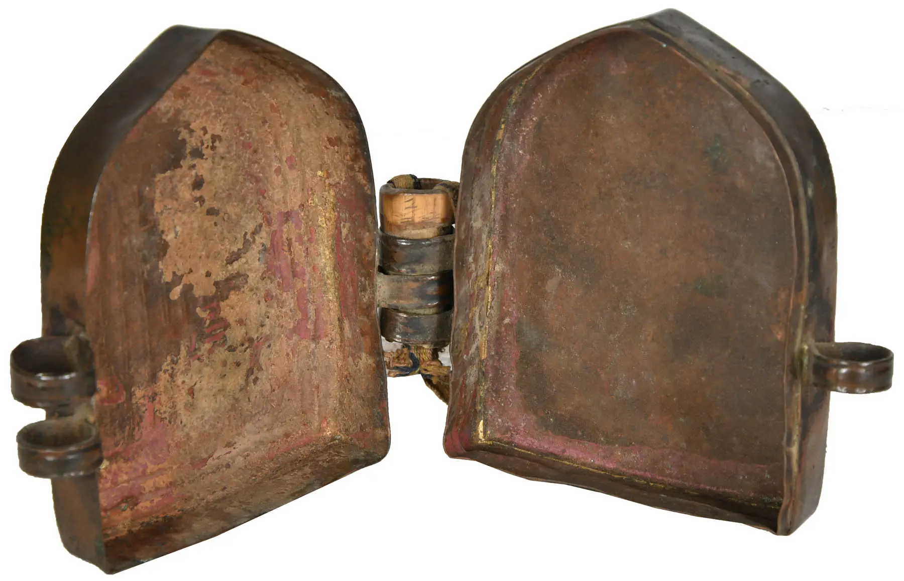 Gau box in Tibetan Buddhist culture is an amulet used by traveling devotees to keep the image of the Buddha or protective deities, and medicinal herbs that heal them during their long travels. This pure copper Gau box is made with beautiful simplicity, with two sets of holes to put the string and wear this amulet to keep the powers of one’s divine protectors close.