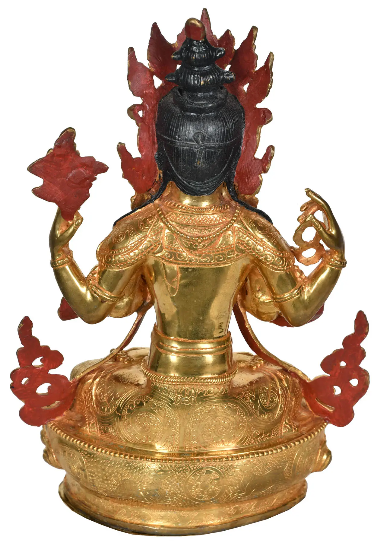28" Tibetan Buddhist Deity - Chenrezig (Four Armed Avalokiteshvara) | Brass Statue