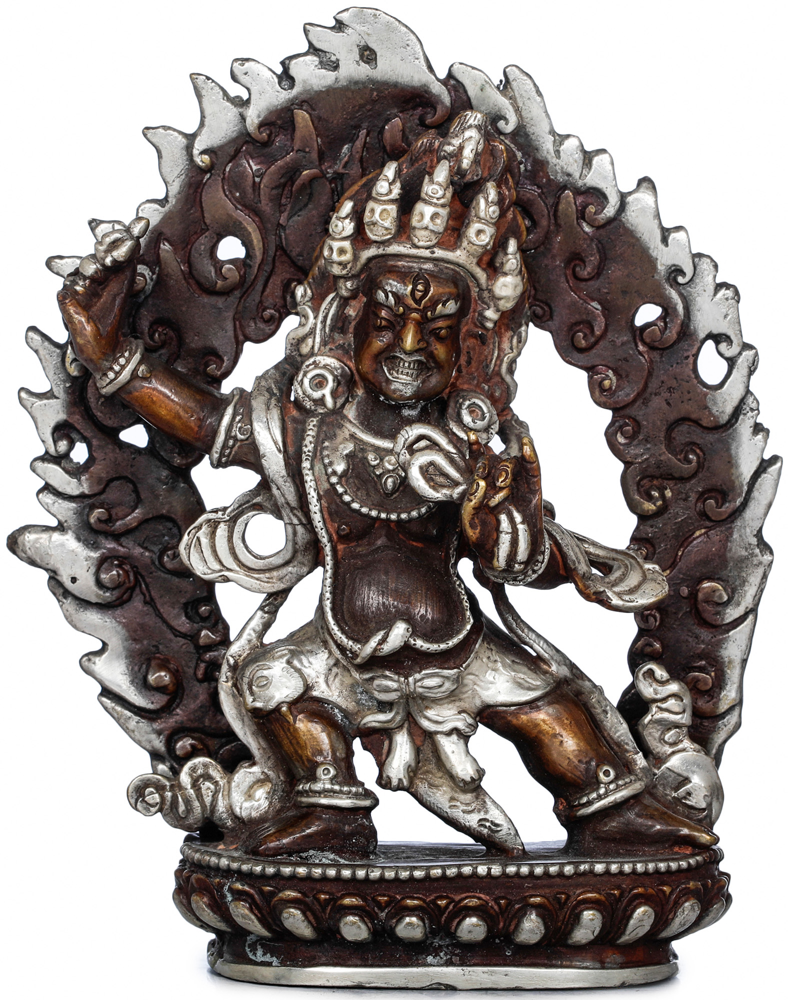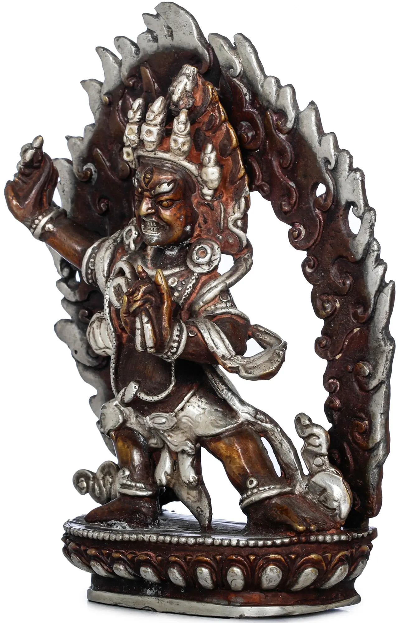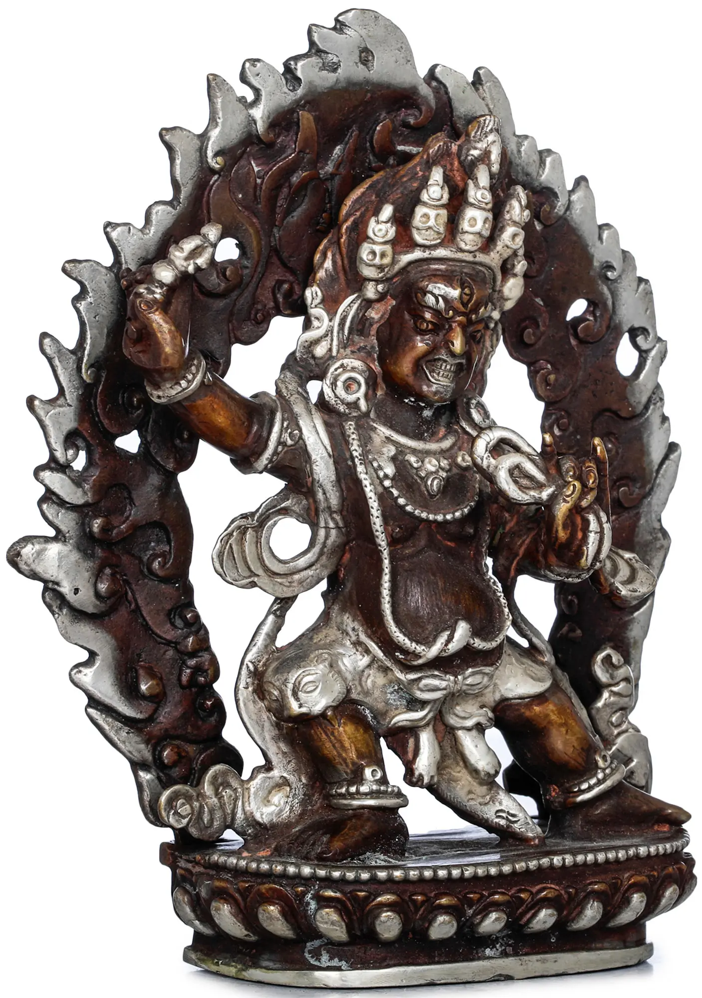 This statue is a testament to the rich artistic heritage of Nepal, a country steeped in spiritual traditions and renowned for its skilled metalworkers. Each detail, from the delicate rendering of his adornments to the powerful musculature, is meticulously crafted from copper. The contrasting metallic finishes highlight the dynamic form and add a sense of depth and vibrancy. The base upon which Vajrapani stands is often depicted as a lotus, a symbol of purity and spiritual awakening, further enhancing the sacred nature of the piece. Owning such a statue is not only an aesthetic pleasure but also an invitation to connect with the profound spiritual legacy of Tibetan Buddhism and the artistry of Nepal. This piece serves as a constant reminder of the power of protection, wisdom, and the unwavering pursuit of enlightenment.