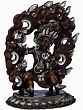 The dynamic posture of this statue, with its powerful stance and swirling fiery nimbus, conveys the potent energy that Vajrapani directs towards negativities. In Buddhist lore, he is seen as the force that subdues demons, negative emotions, and ignorance, clearing the path for practitioners to achieve liberation. His wrathful appearance is not one of malice, but rather a fierce compassion that aggressively eradicates hindrances. This imagery aligns with the ancient concept of protective deities in many cultures, serving as a formidable guardian against spiritual and worldly threats. The intricate detailing, including the skull adornments and the powerful musculature, further accentuates his role as a vigilant protector.