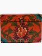 The surrounding floral motifs further enrich the box's spiritual narrative. The prominent lotus flower, depicted in full bloom, is a profound symbol in Buddhism. Despite growing from muddy waters, the lotus emerges untainted, representing purity, enlightenment, and the potential for spiritual awakening that resides within all beings. Its unfolding petals suggest the progressive stages of spiritual realization. The other stylized flowers, rendered in bold reds and tranquil teals, add to the overall auspiciousness and beauty of the piece. These floral elements, common in Tibetan art, often symbolize the impermanence of worldly existence and the beauty that can be found even amidst hardship.