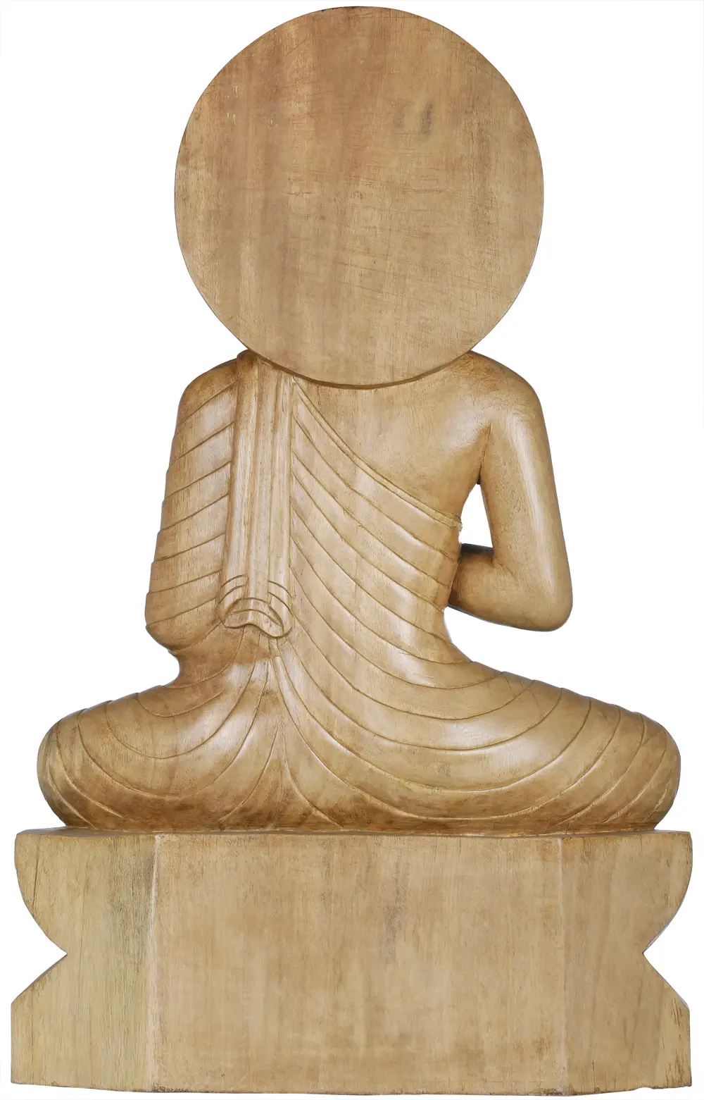 This magnificent wooden statue is more than just a decorative item; it is an invitation to mindfulness and a reminder of the path to inner peace. According to Buddhist lore, Lord Buddha, born Siddhartha Gautama, renounced his princely life to seek the truth. After years of asceticism and meditation, he attained enlightenment under the Bodhi tree, becoming the Buddha, the "awakened one." His subsequent teachings, the Dharma, have guided millions towards liberation. This statue embodies the moment of his divine revelation and his compassionate desire to share this profound knowledge. Whether placed in a meditation room, a living area, or an office, it serves as a focal point for reflection and a source of calming energy, evoking the spiritual atmosphere of ancient Buddhist monasteries and temples. The natural wood grain adds a tactile and organic beauty, further enhancing its spiritual resonance. This large-sized piece makes a significant statement, commanding attention and inspiring contemplation.