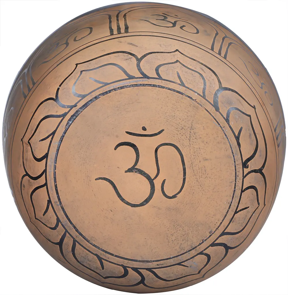 The Tibetan Hindu Aum Singing Bowl is a tool for meditation and inner peace. Handcrafted with care, this bowl resonates with the sacred sound of "Aum," representing the universal vibration of creation. Using this bowl in your meditation practice creates a harmonious and calming atmosphere. The sound of the bowl is believed to promote mindfulness and spiritual awakening - let this bowl guide you on a journey of inner serenity and self-discovery.