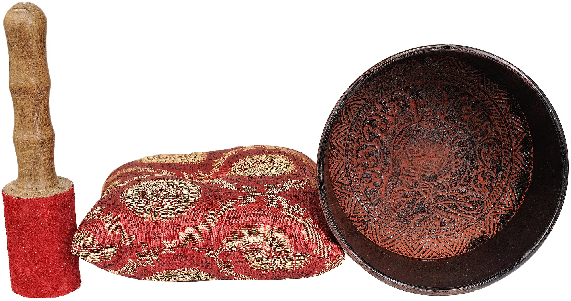 Tibetan Buddhist Singing Bowl Inside The Images of Buddha in Bhumisparsha Mudra
