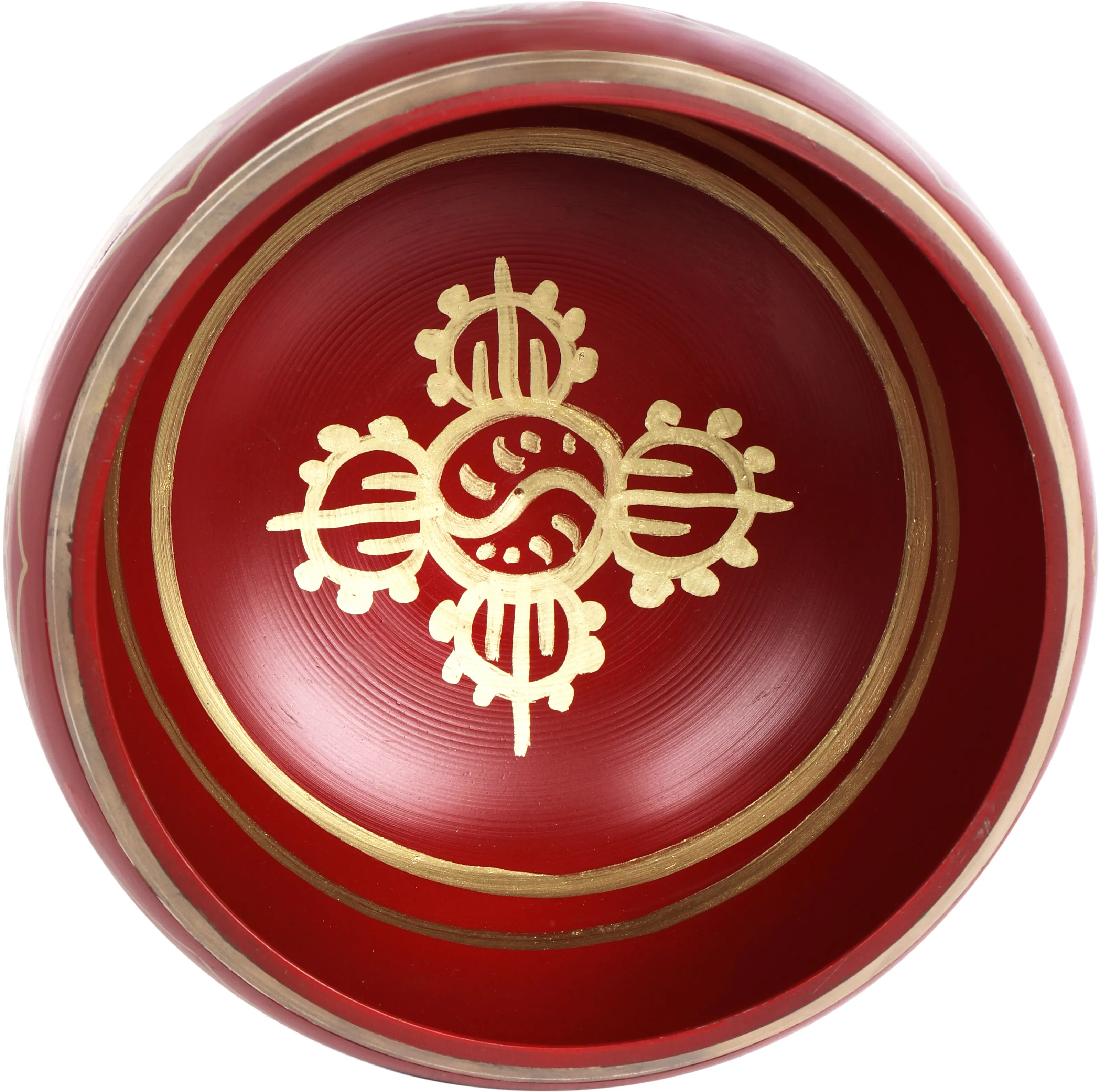 5" Tibetan Buddhist Brass Singing Bowl with Image of Vishwa Vajra Inside | Handmade