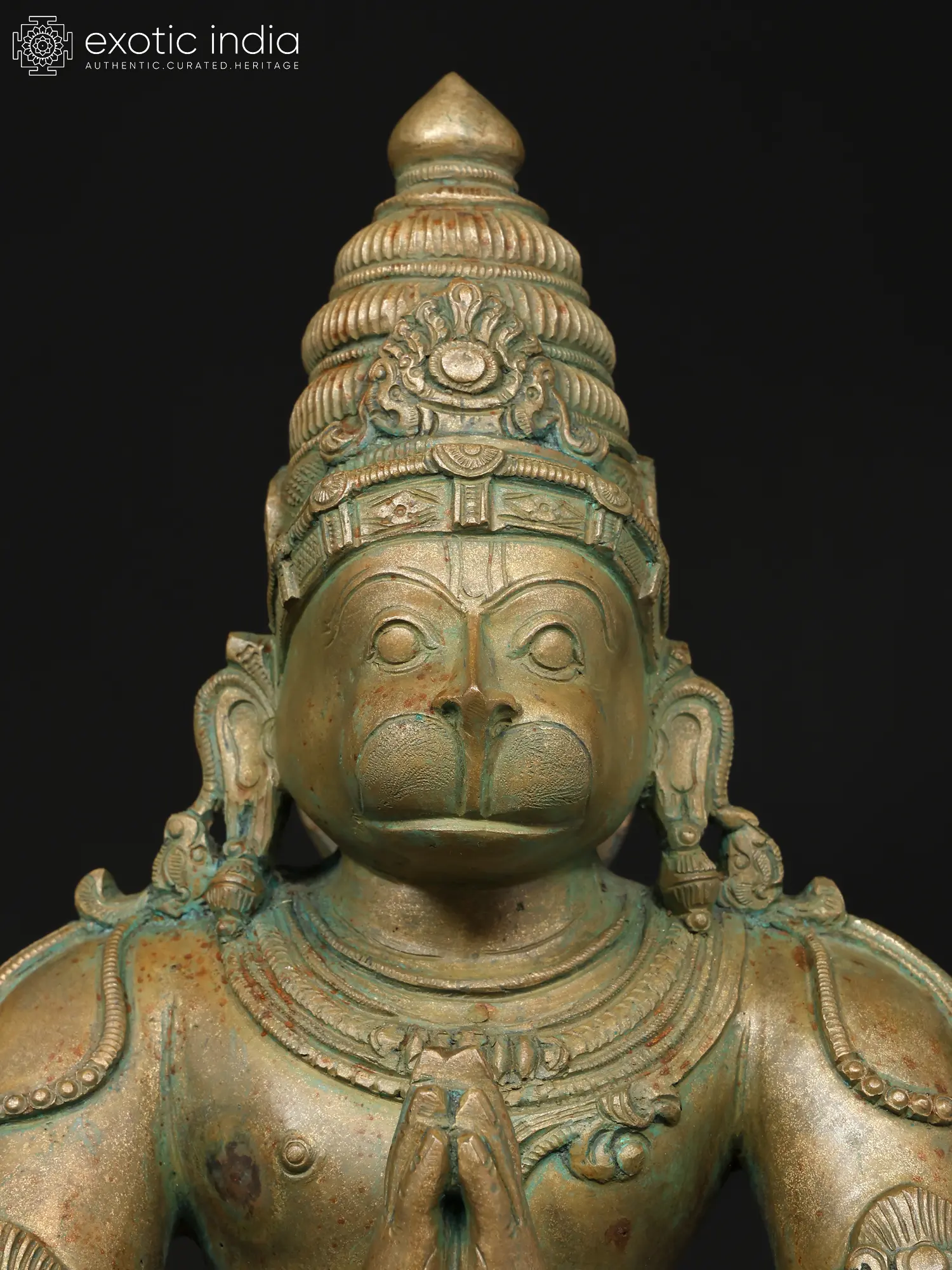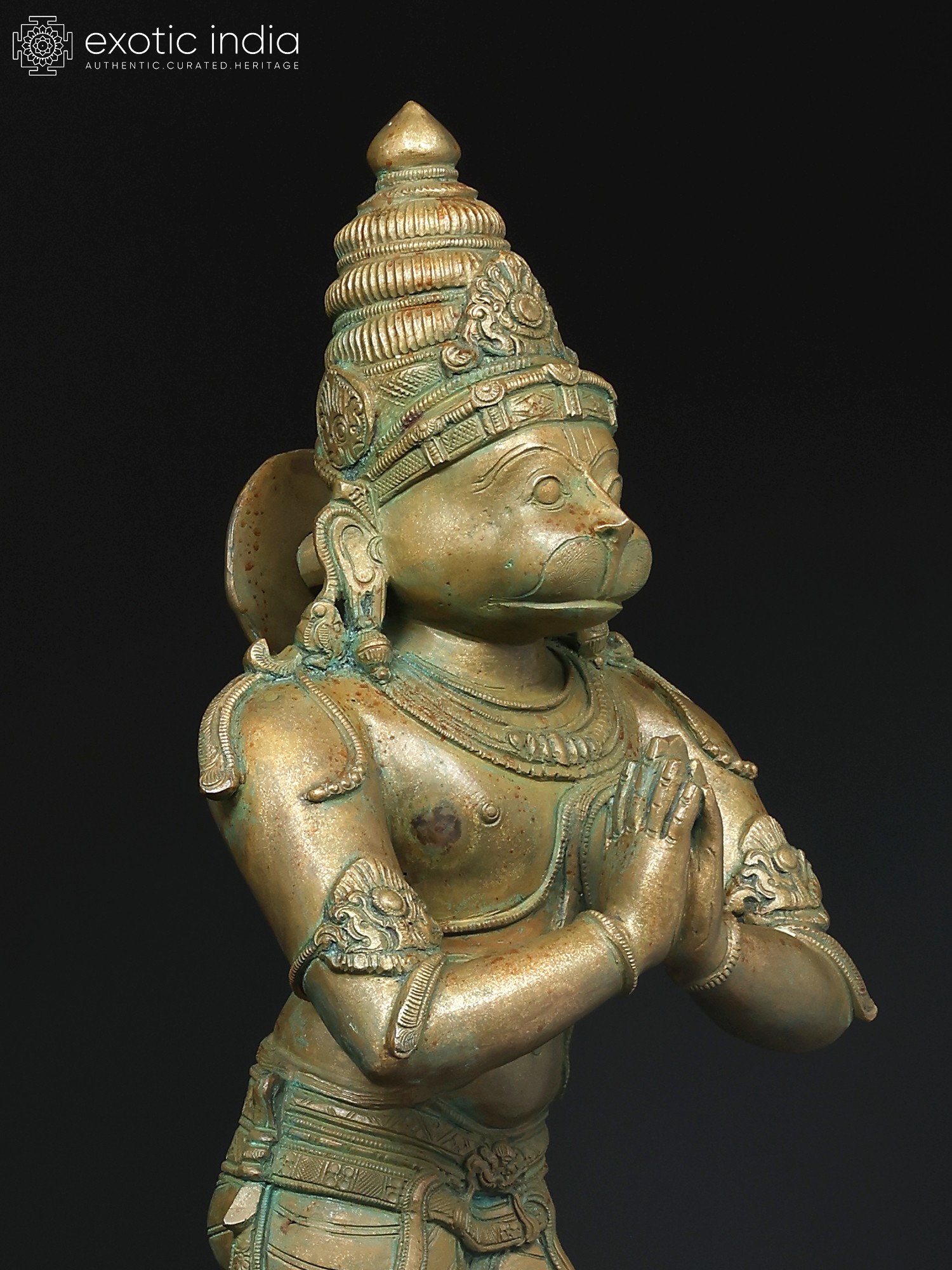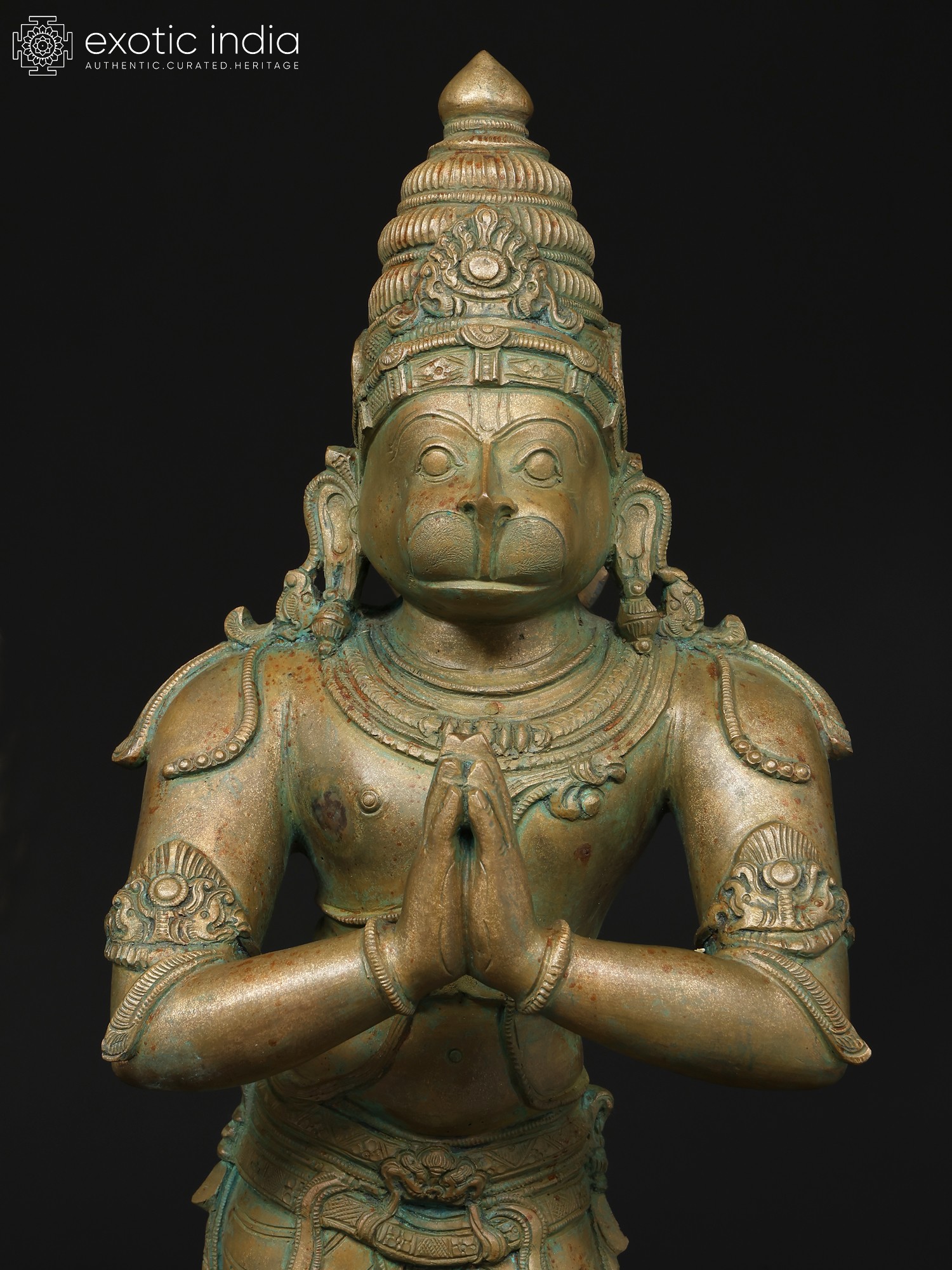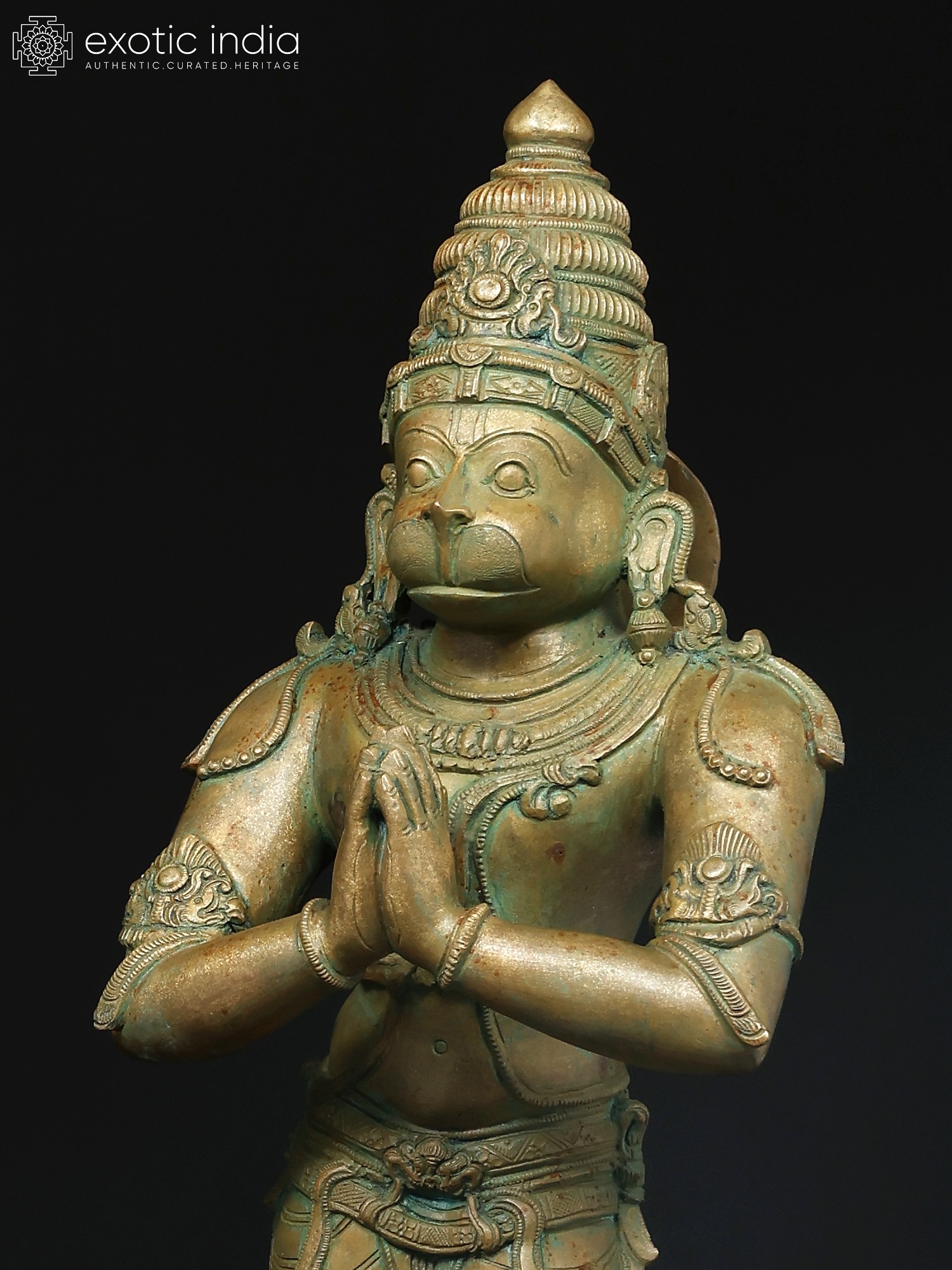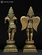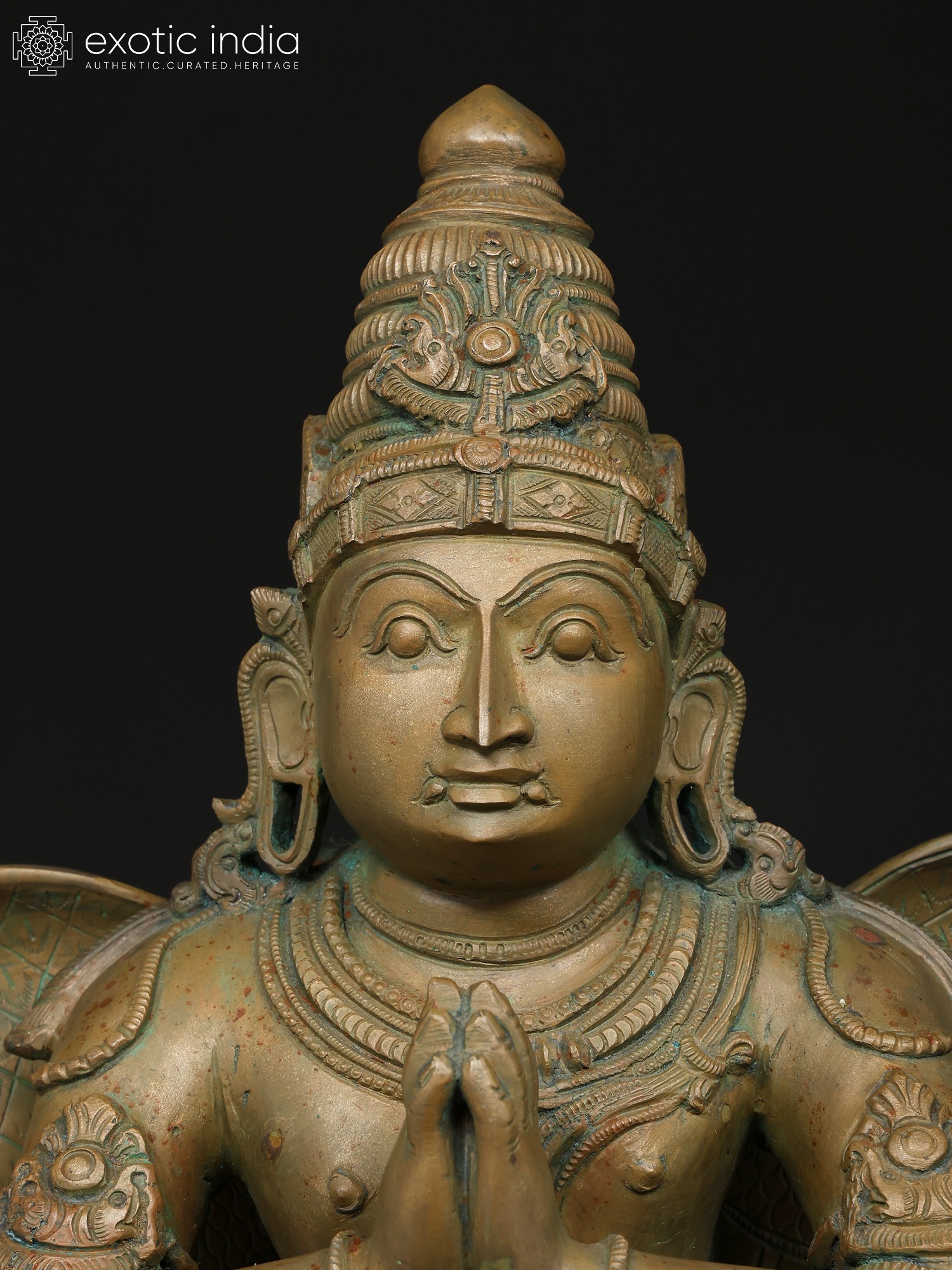Both are adorned with exquisite precision, wearing kirtimukha waistbands and makara-shaped armbands, with Garuda marked by peacock feathers tucked behind his ears and Hanuman adorned with his characteristic globular kundalas, reflecting the meticulous attention to detail with which Chola bronzes treat ornamentation.