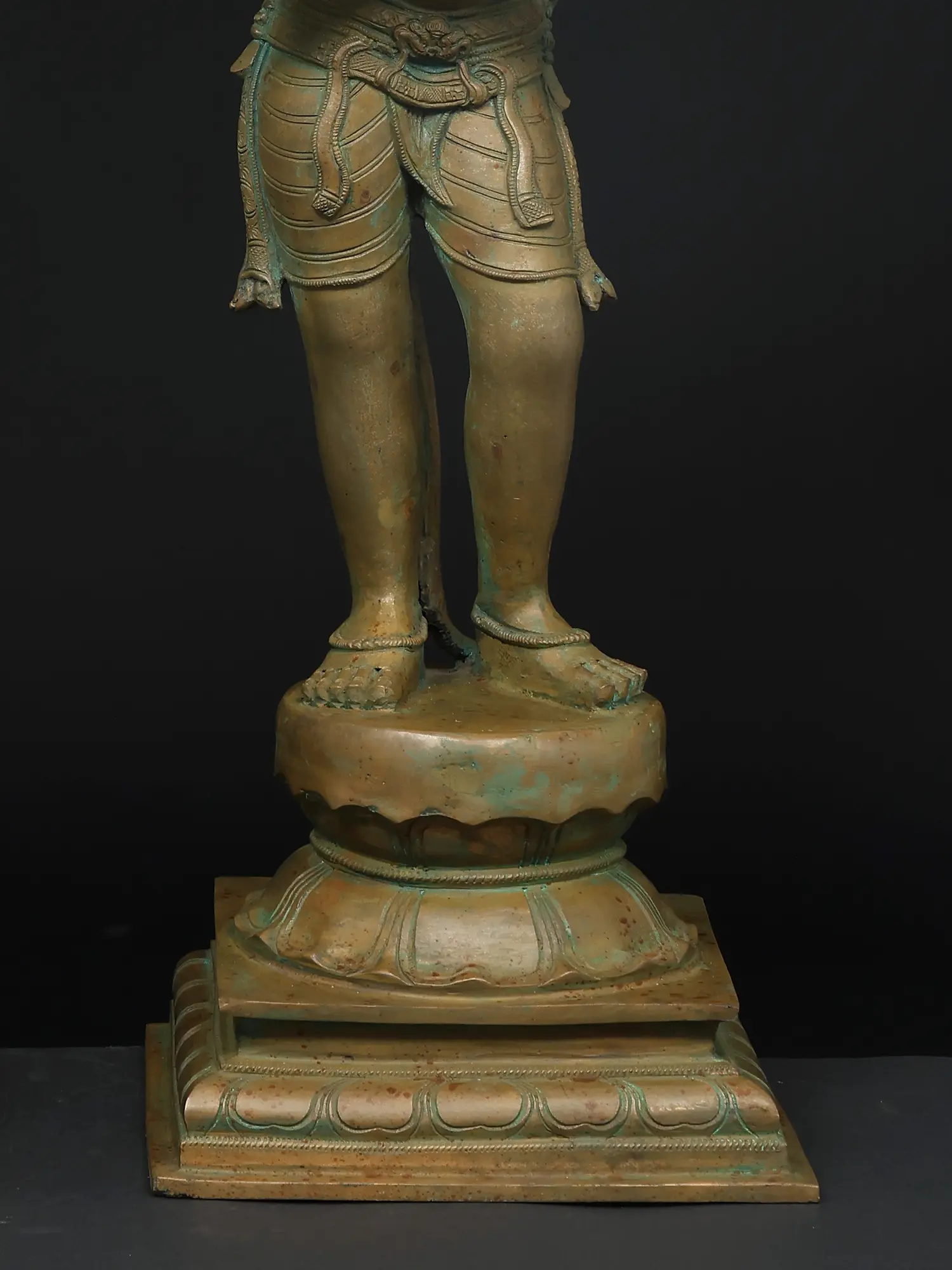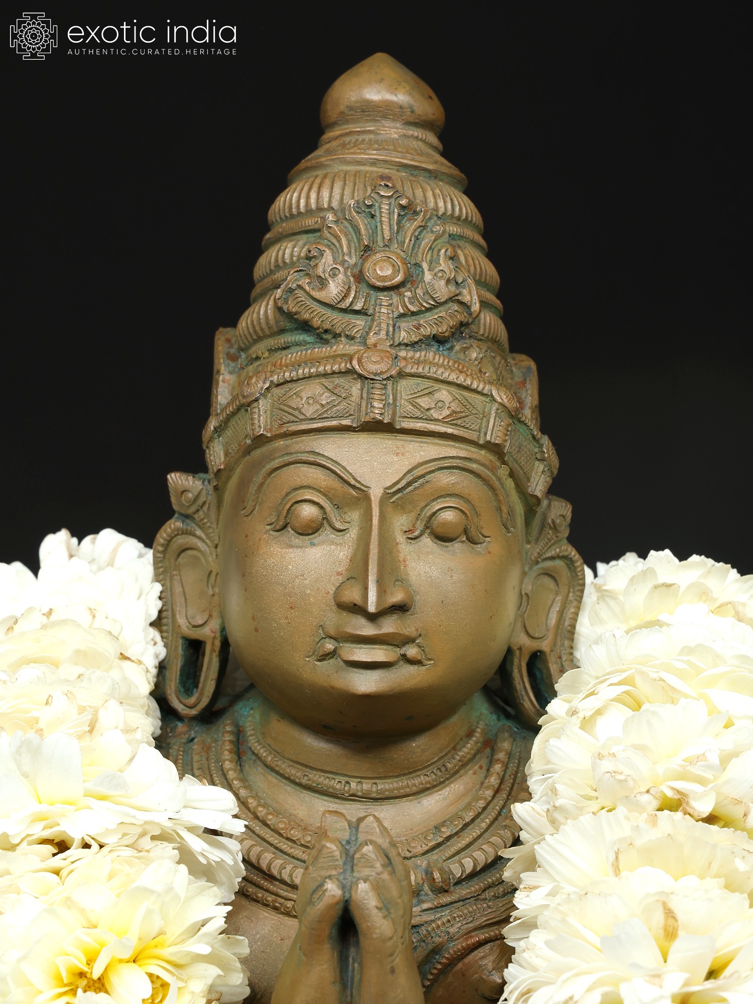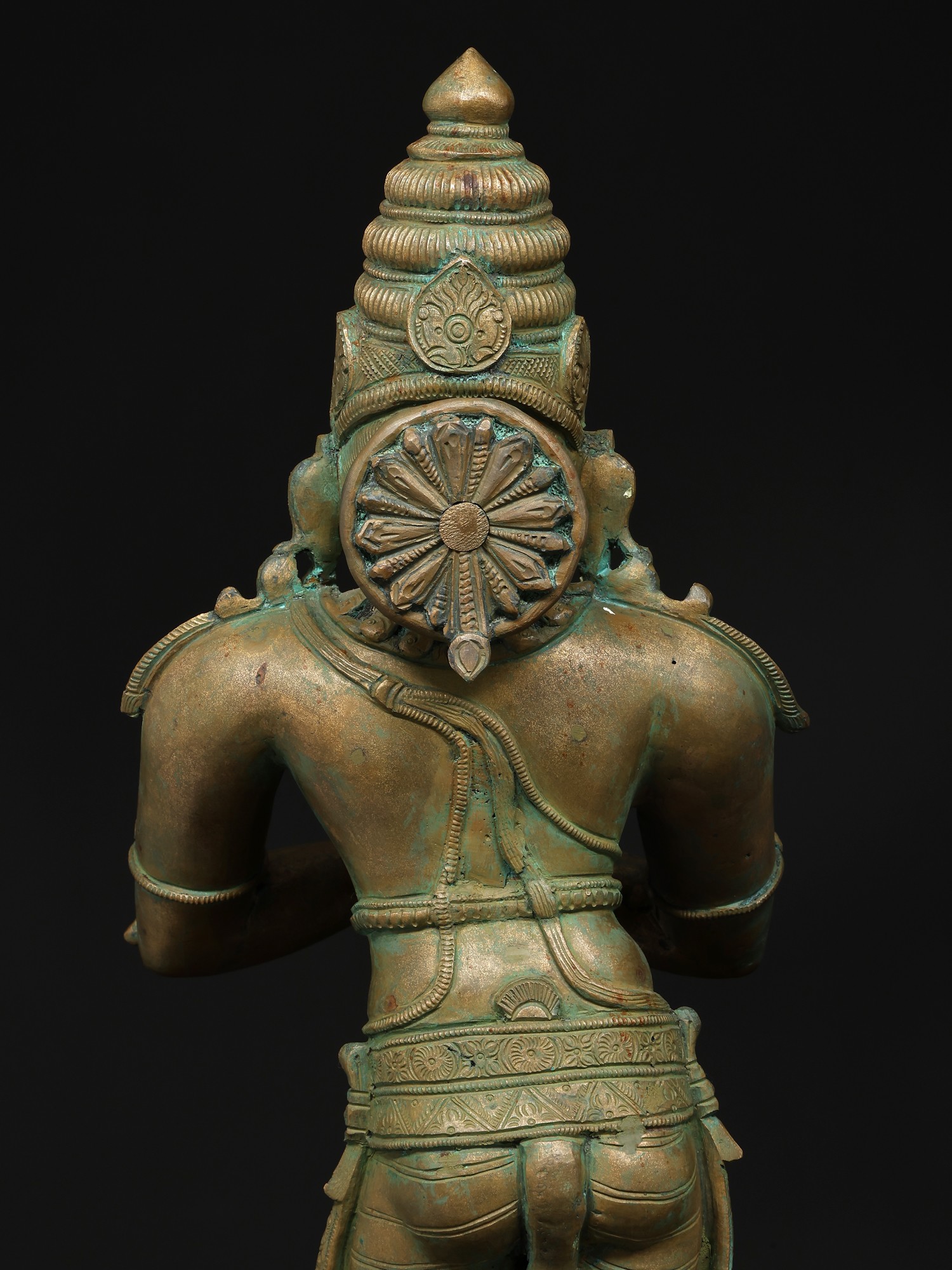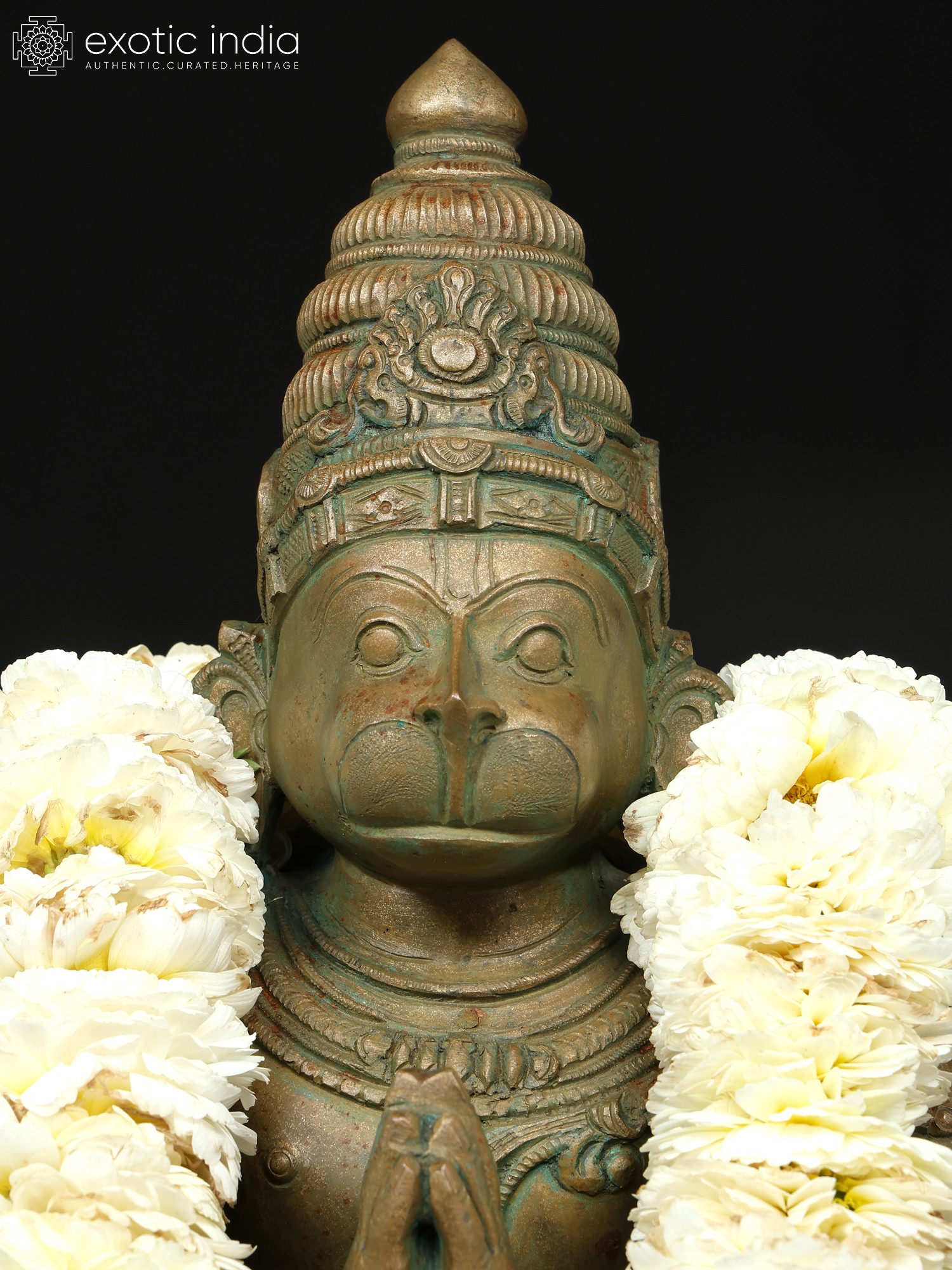 Both are adorned with exquisite precision, wearing kirtimukha waistbands and makara-shaped armbands, with Garuda marked by peacock feathers tucked behind his ears and Hanuman adorned with his characteristic globular kundalas, reflecting the meticulous attention to detail with which Chola bronzes treat ornamentation.