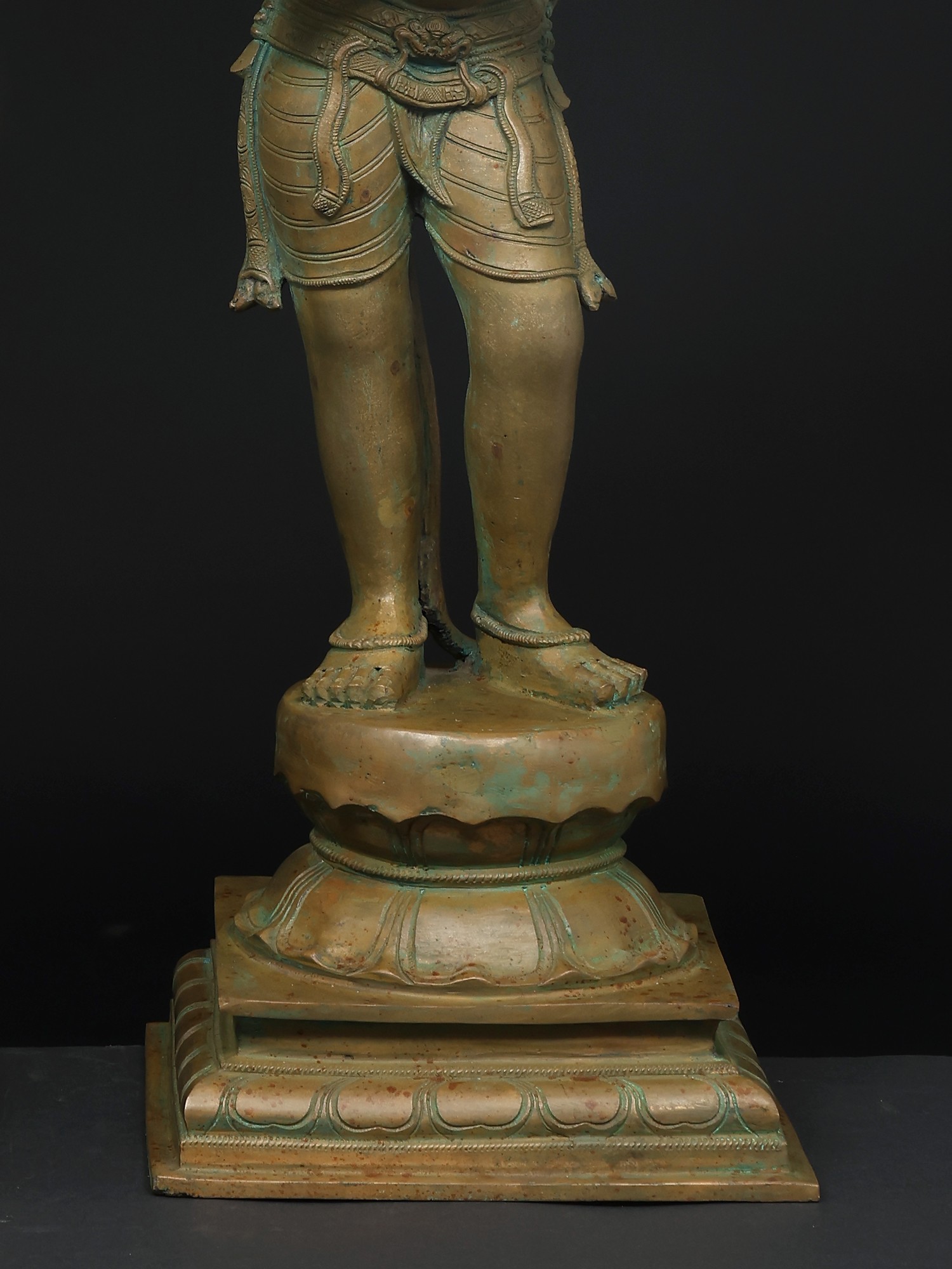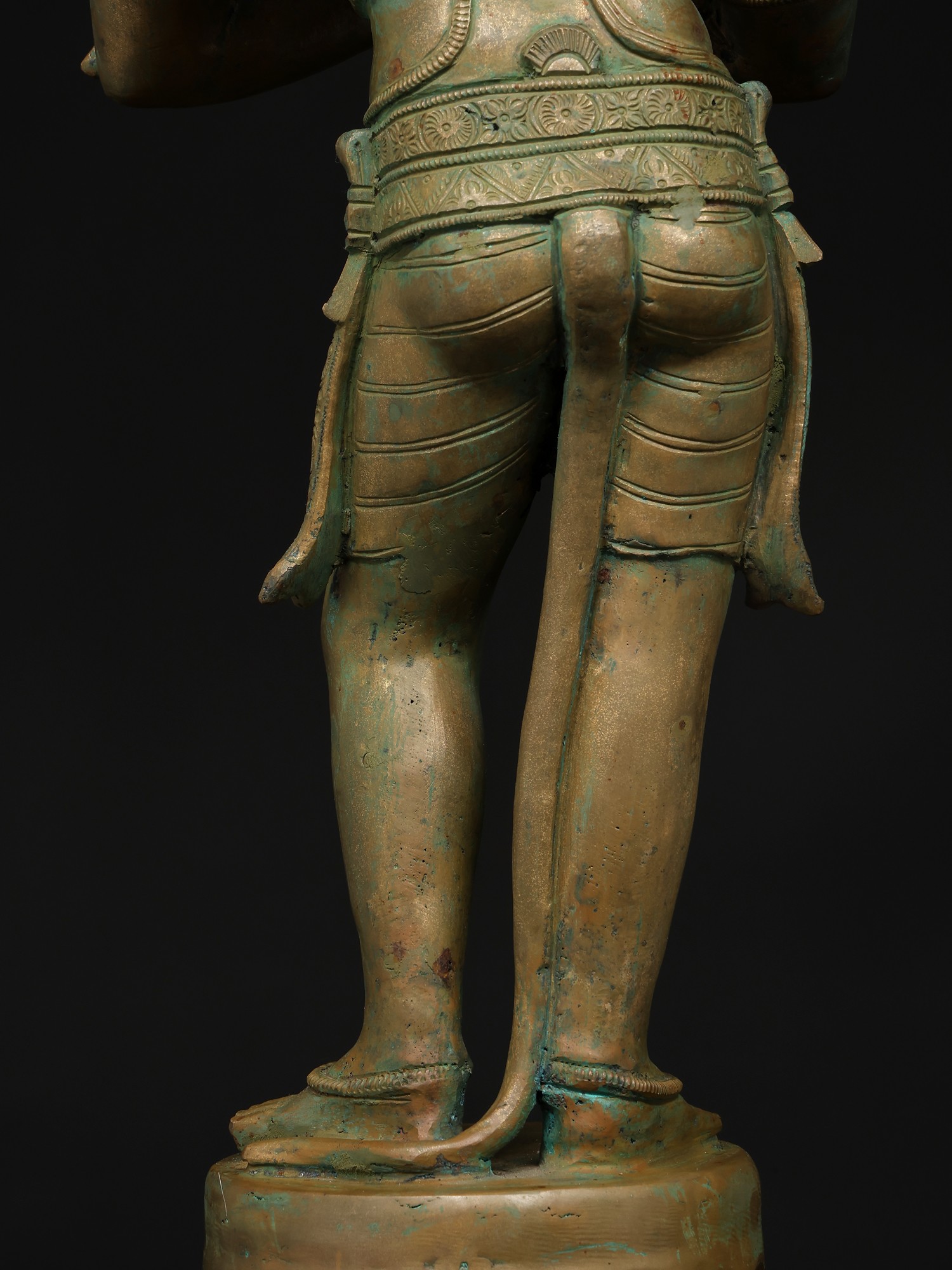The two figures rise from lotus pedestals, their alert expressions and devoted gestures presenting them as powerful guardians of the sanctum and devotees par excellence. Both are slightly bent forward, as if in eternal obeisance to their Lord.