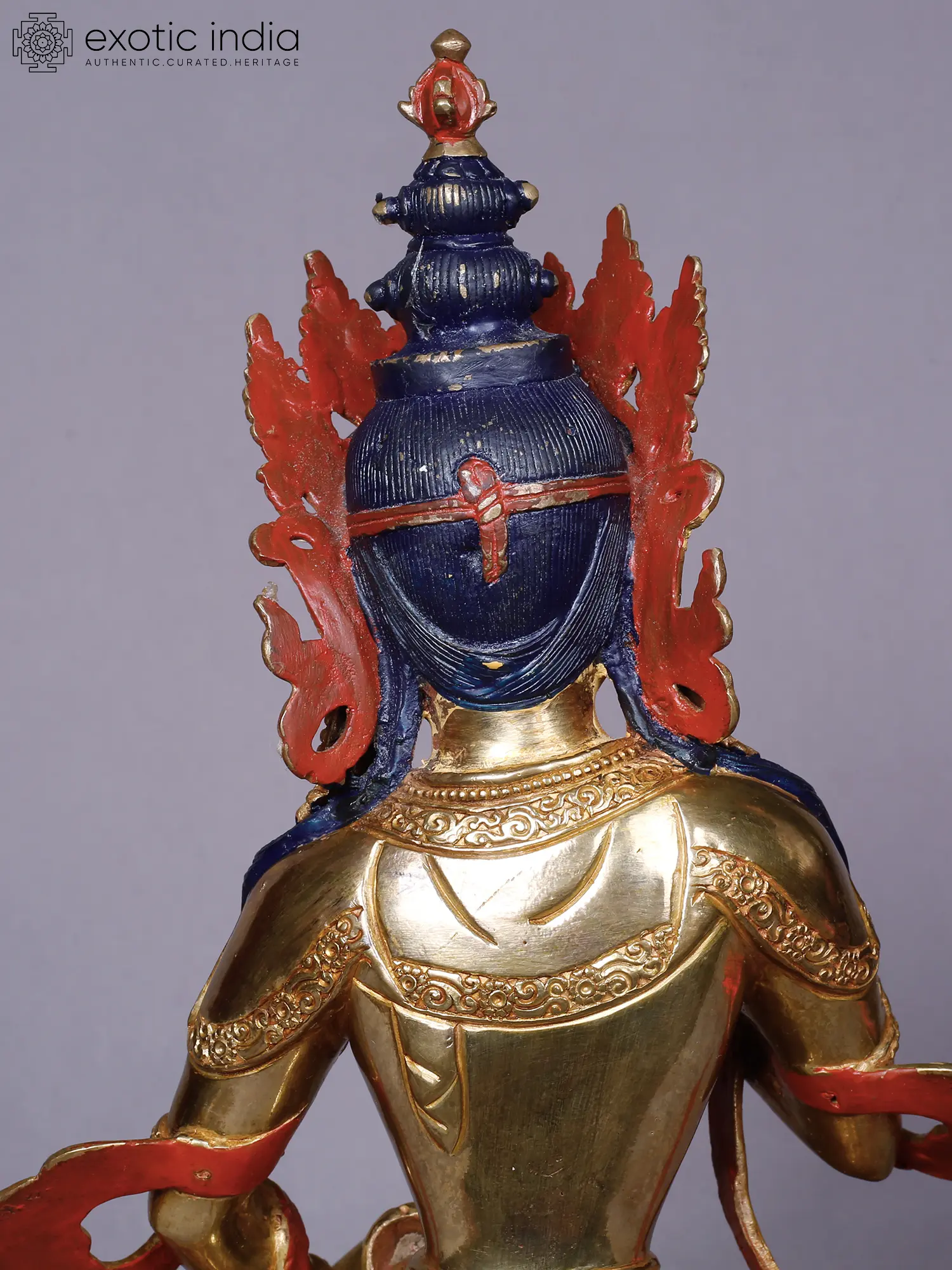 7" Buddhist Deity Vajrasattva Idol from Nepal | Copper Statue Gilded with Gold