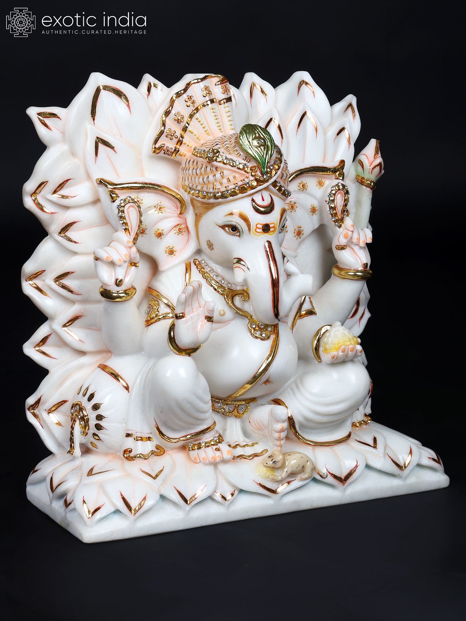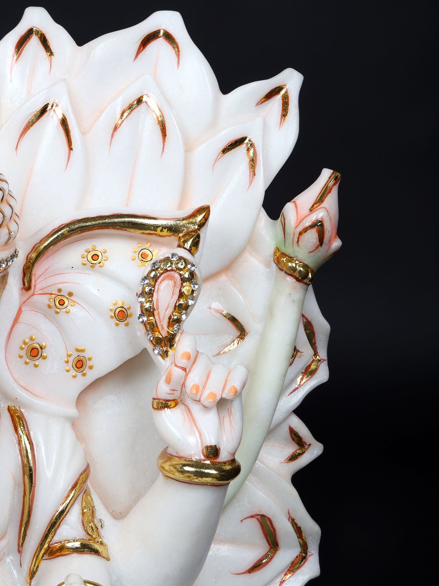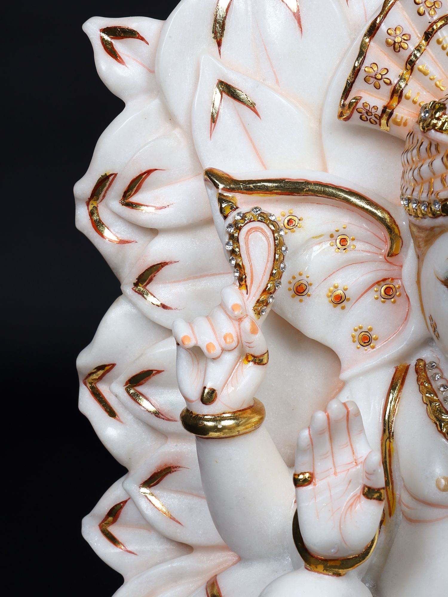 18" Lord Ganesha Seated on Lotus | Handmade | White Marble Ganesh Statue | Ganpati Statue | Vinayak | Ganpati