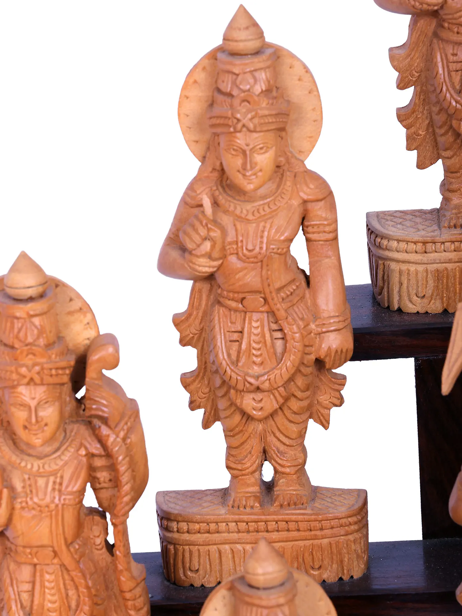 Each of these divine forms is brought to life through skilled craftsmanship, capturing their iconic attributes and serene expressions. The natural grain of the wood lends a warm and organic feel to the carvings, enhancing their spiritual resonance. The intricate details on the garments, weapons, and divine symbols are a testament to the artisan's dedication and reverence for the subject matter. This set is more than just a decorative piece; it is a conduit to the sacred stories and timeless wisdom that have guided countless generations. Displayed together on their tiered wooden stand, the Dashavatara create a powerful focal point, bringing an aura of peace, protection, and divine grace into any space. Whether you are a devotee seeking a tangible connection to the divine or an admirer of exquisite art, this collection offers a profound and beautiful expression of faith and tradition.