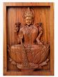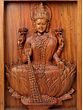 Wooden Goddess Lakshmi Seated on Lotus Wall Panel