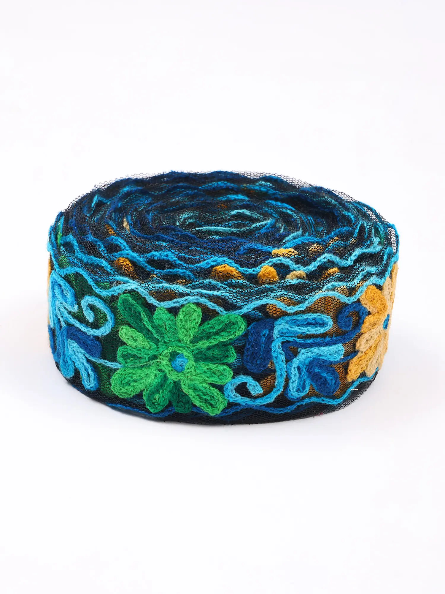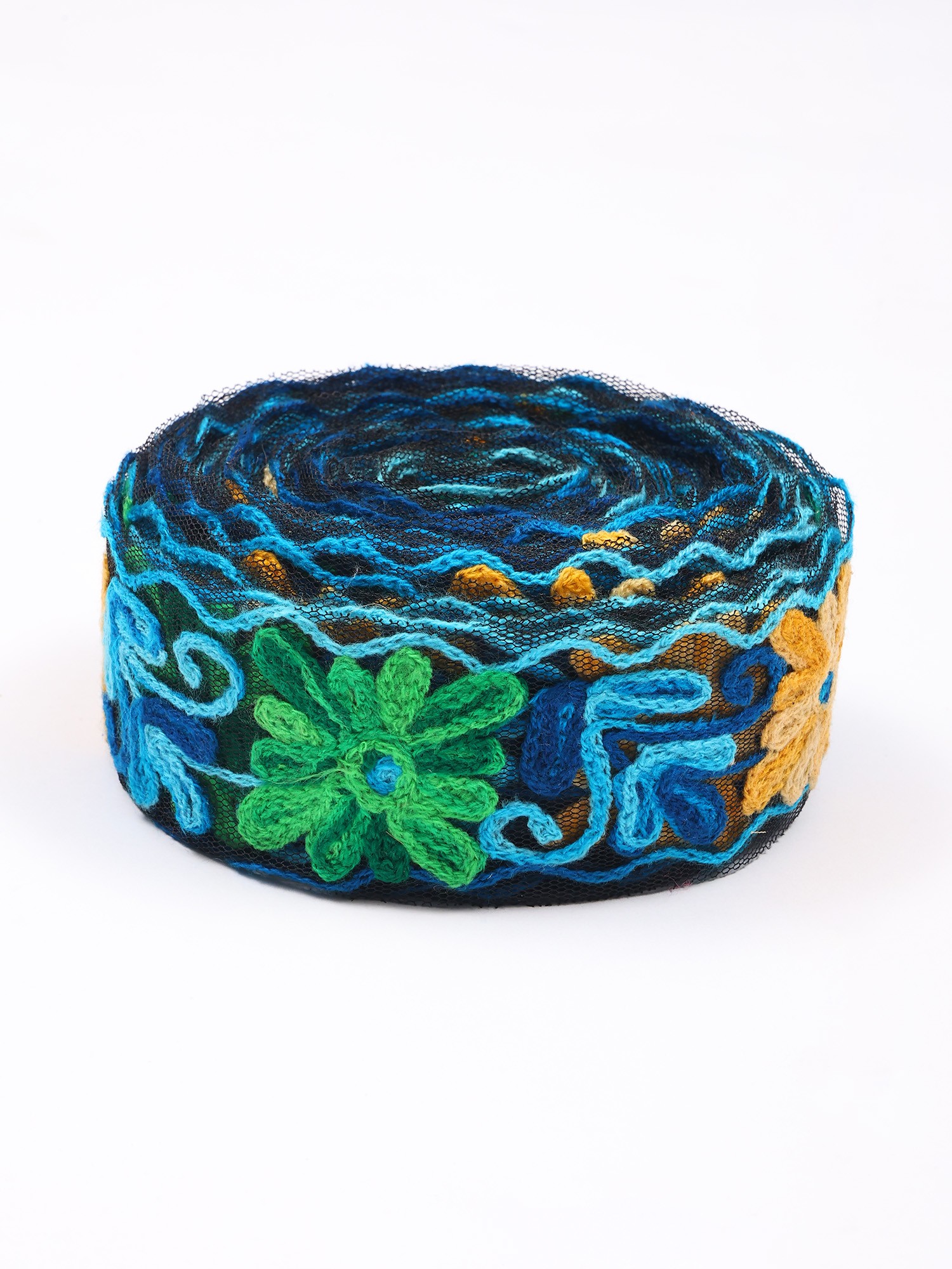 Each element of this piece is a testament to meticulous craftsmanship, brought to life through the time-honored Aari embroidery technique. The foundation of fine net provides a diaphanous backdrop, upon which vibrant threads are expertly woven into charming floral motifs. You'll appreciate the rich texture and the evident dedication that imbues this border with a sense of heirloom quality.