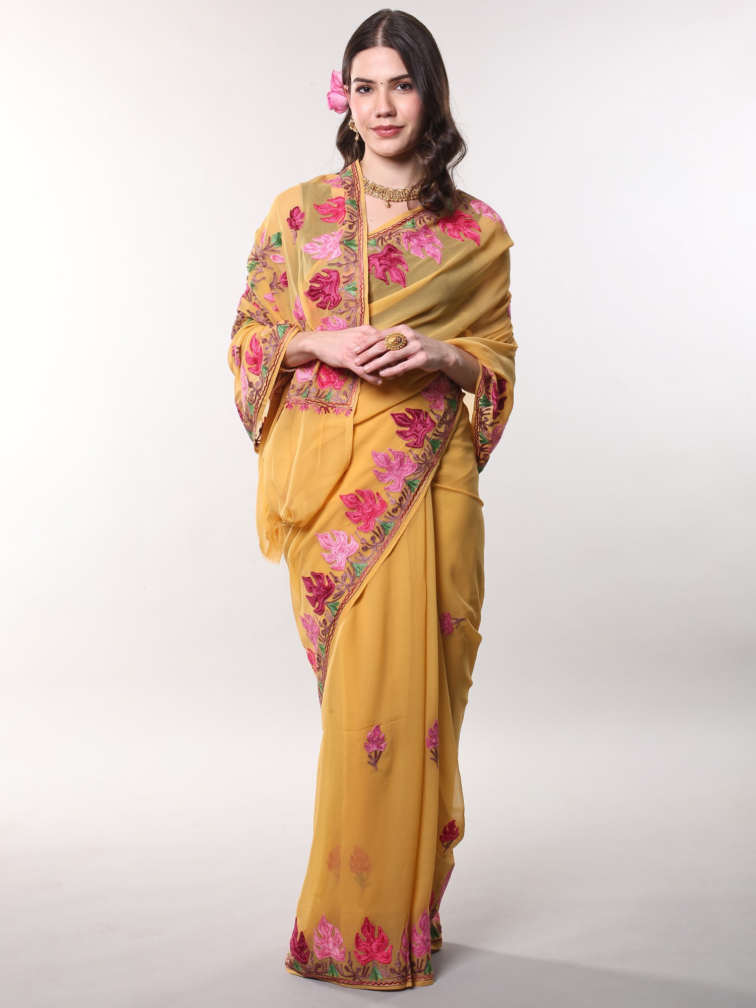 Georgette Kashmiri Sari with Beautiful All-Over Kashida Embroidery