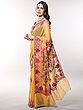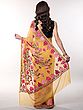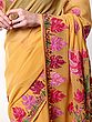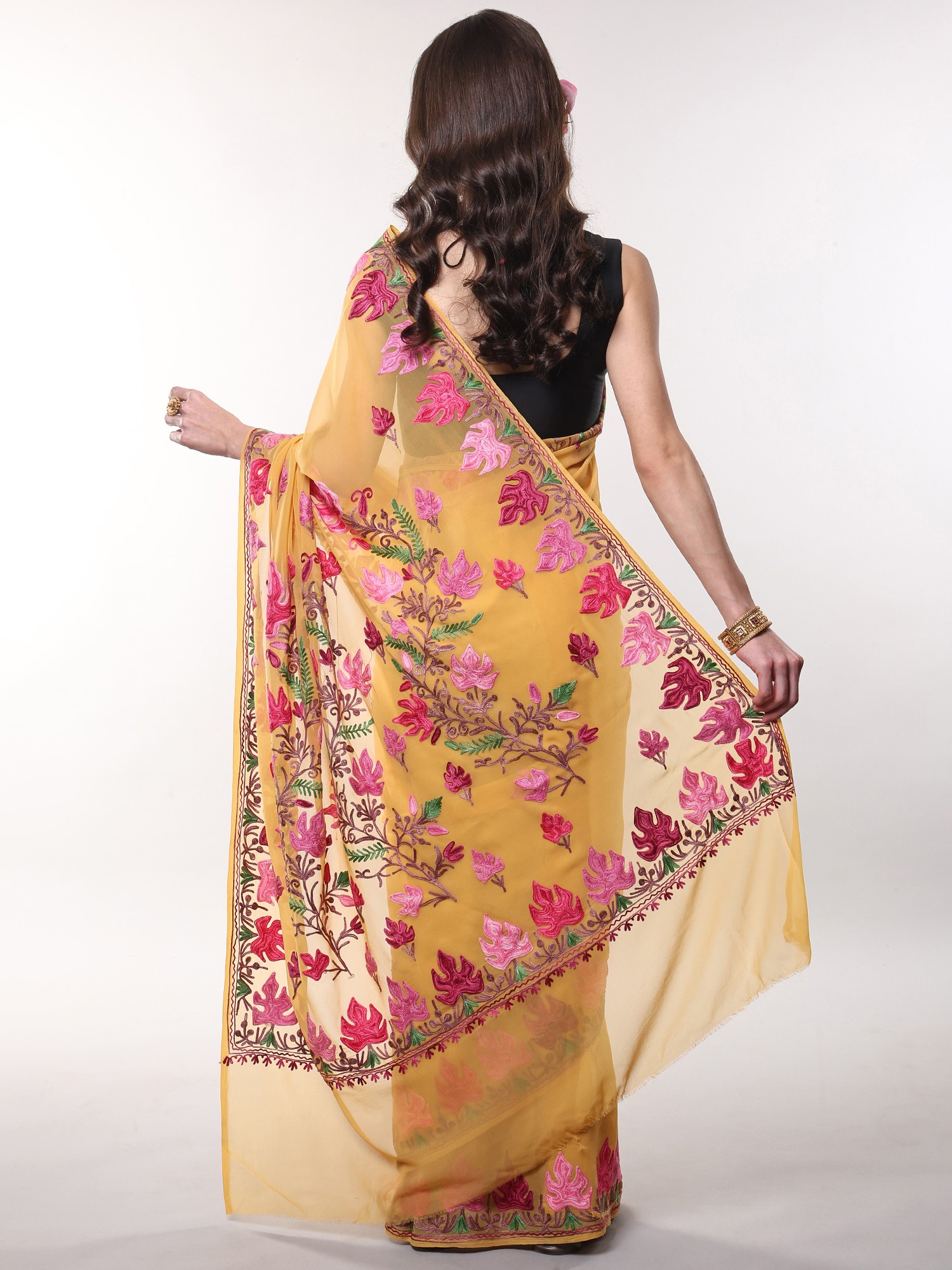 Transparent-Yellow Georgette Kashmiri Saree with Multicolored Aari Embroidered Flowers