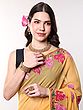 This saree is crafted from the finest georgette fabric, a lightweight, sheer material known for its exceptional drape and luxurious feel against your skin. The georgette provides a graceful flow, adding movement and elegance to every step. Its delicate texture allows the intricate Aari embroidery to truly shine, while its lightweight nature ensures that you remain comfortable throughout the day or night. The subtle sheen of the georgette enhances the already vibrant colors of the saree, creating a mesmerizing visual effect that captures light beautifully. This luxurious fabric is the perfect canvas for the artistry of the Aari embroidery, forming a harmonious blend of texture and design.