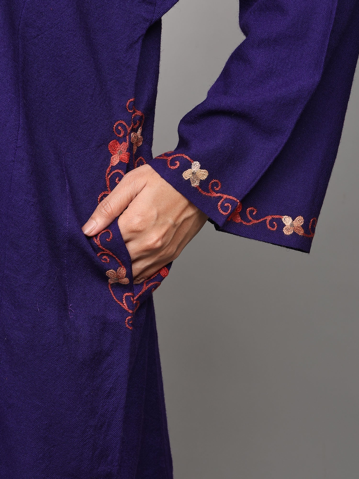 Aari Embroidered Phiran from Kashmir with Side Pockets