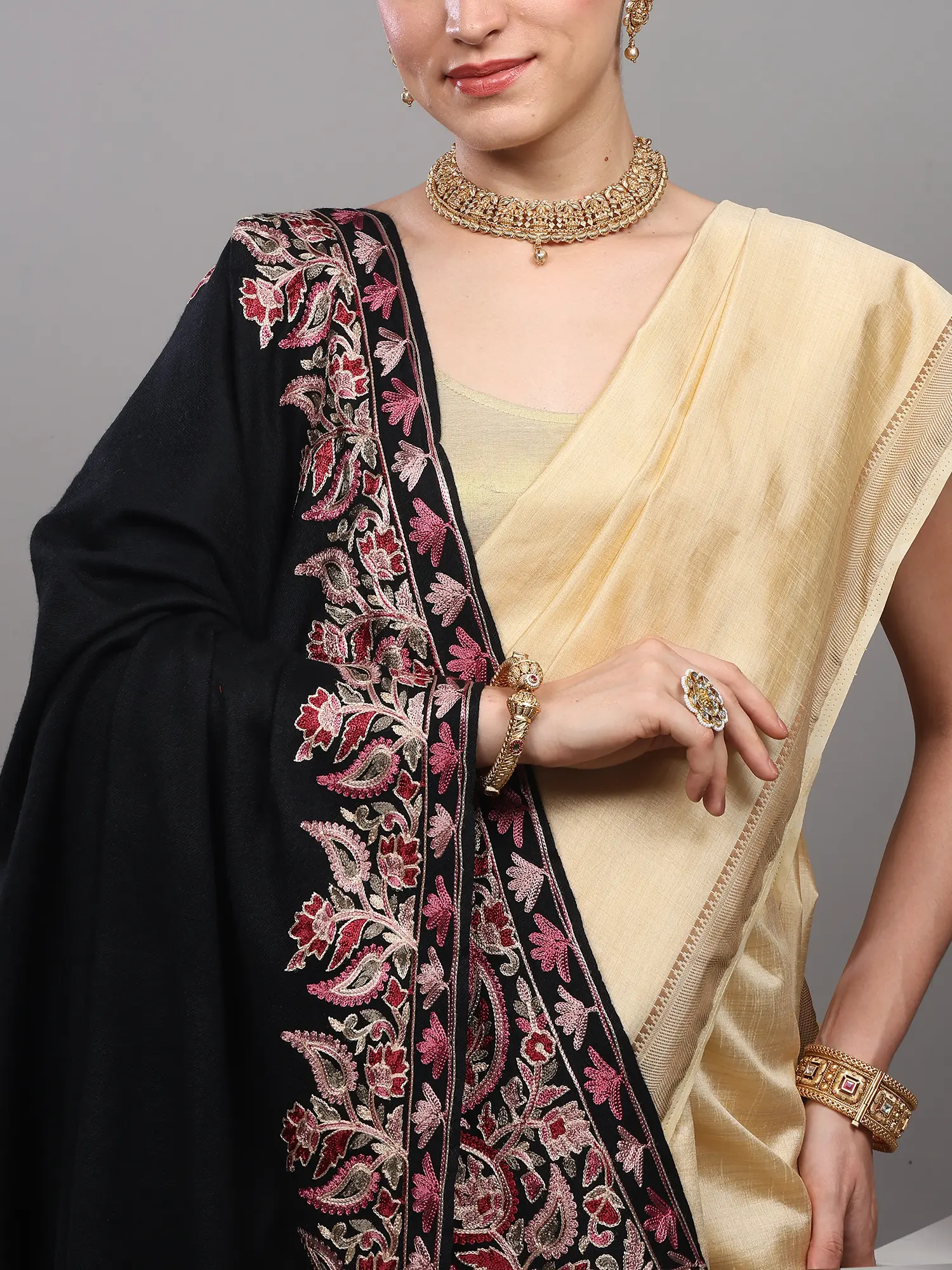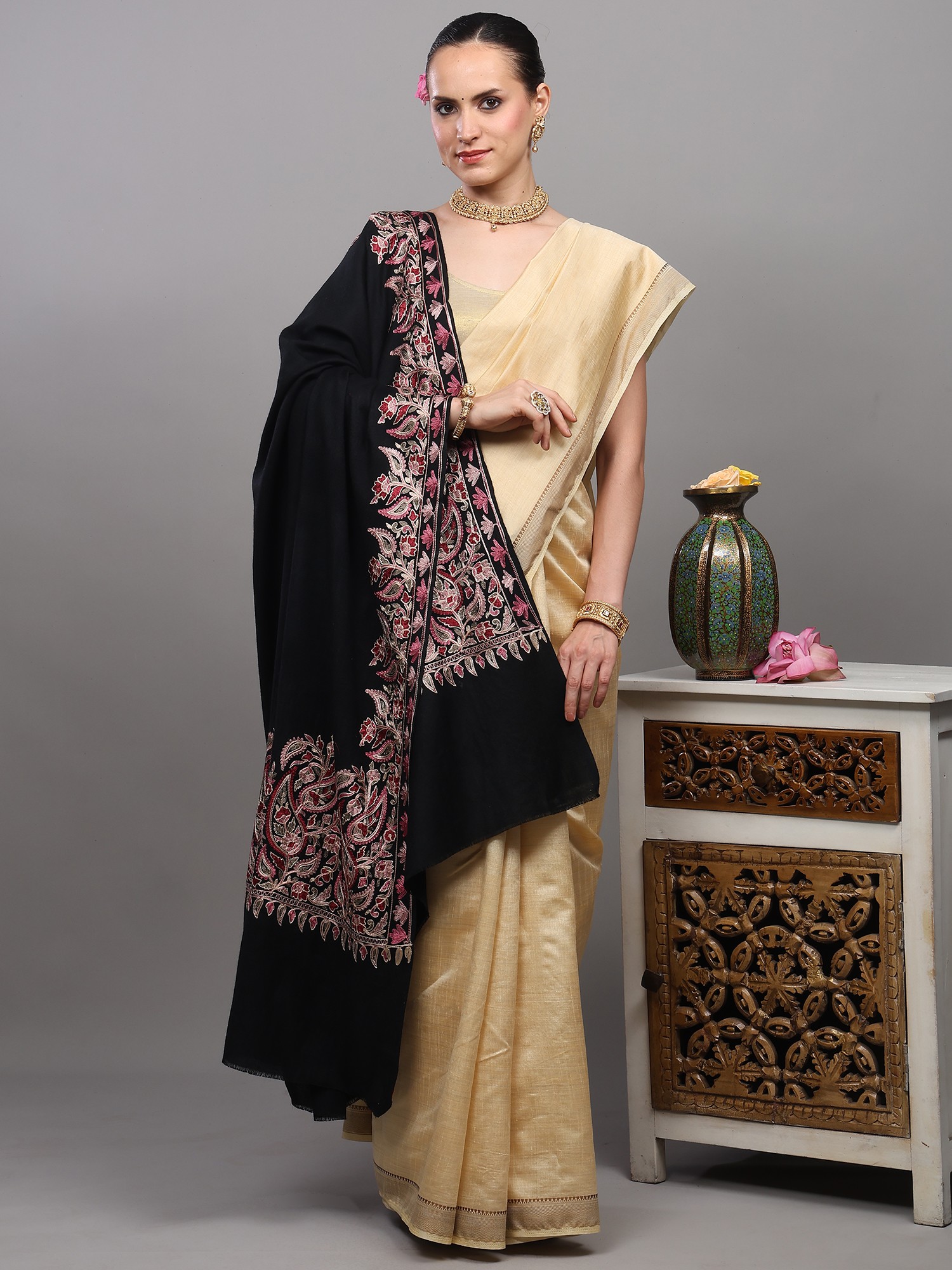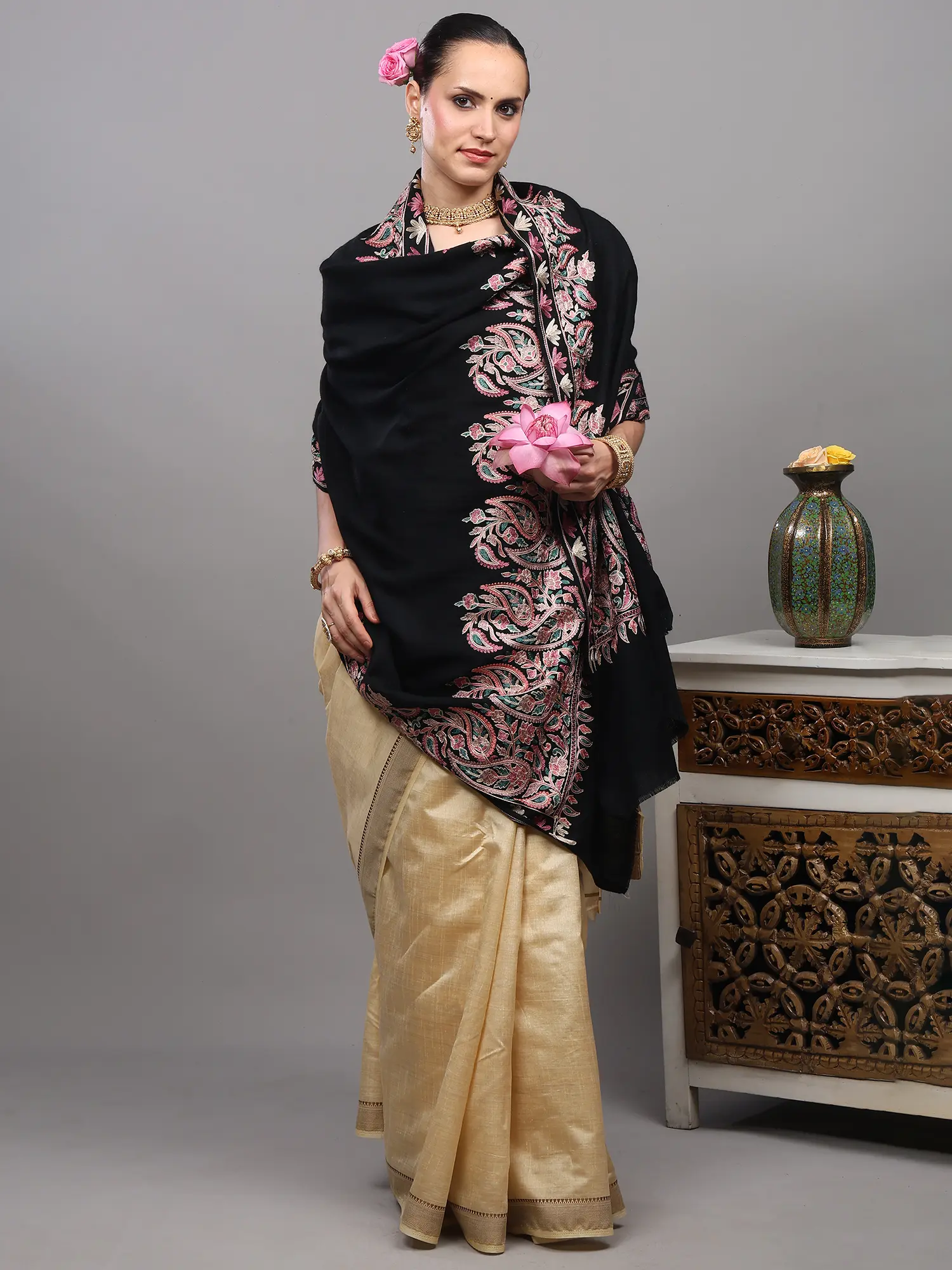 Fine Woolen Shawl with Paisley Aari Embroidery