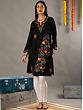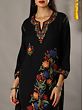 Aari Floral Embroidery Black Woolen Kurti with Detailed Colorful Traditional Kashmiri Motifs