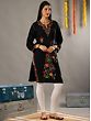 Black-Onyx Pure Silk Kashmiri Long Kurti with Aari Hand Embroidered Maple Vines