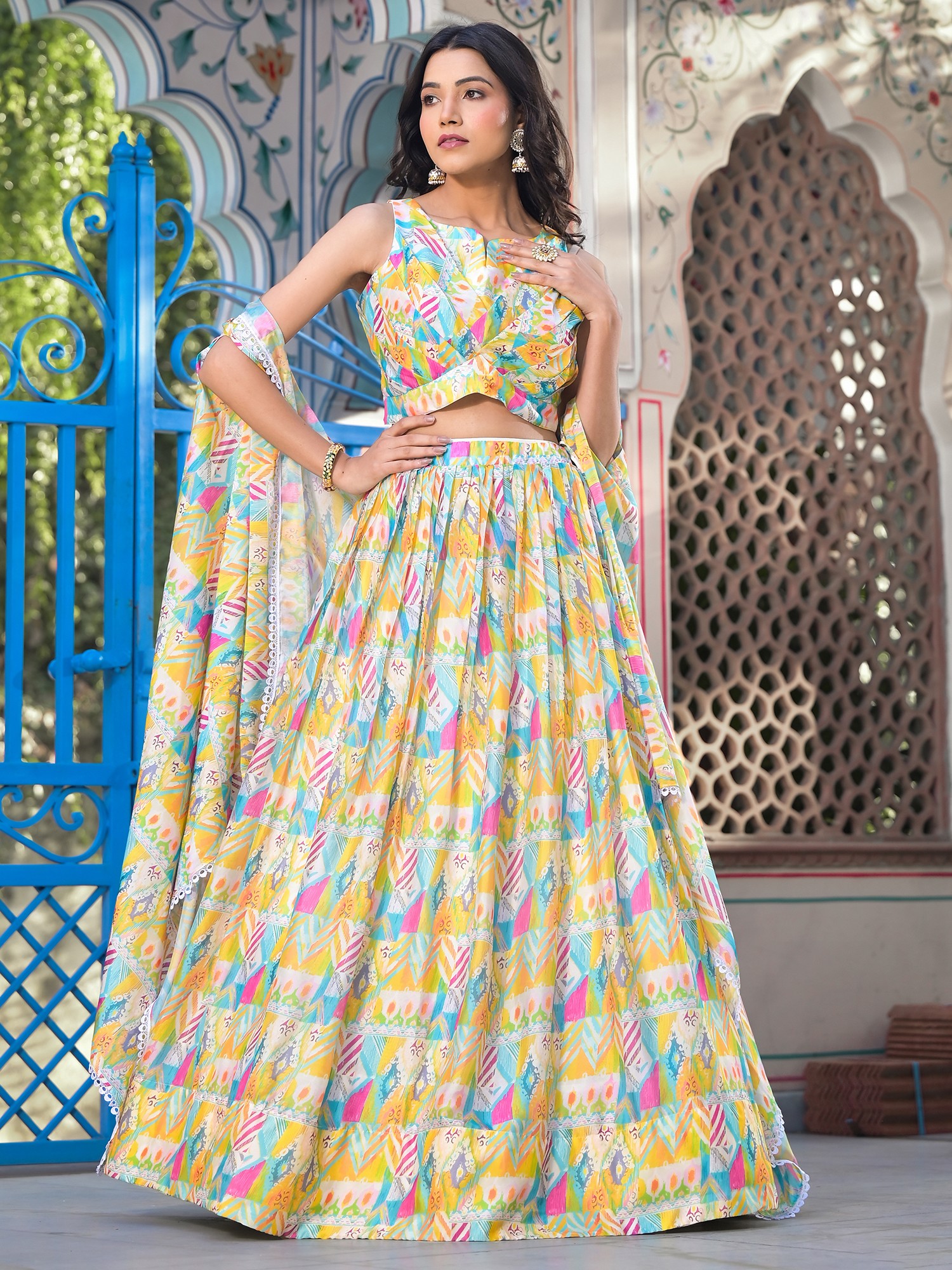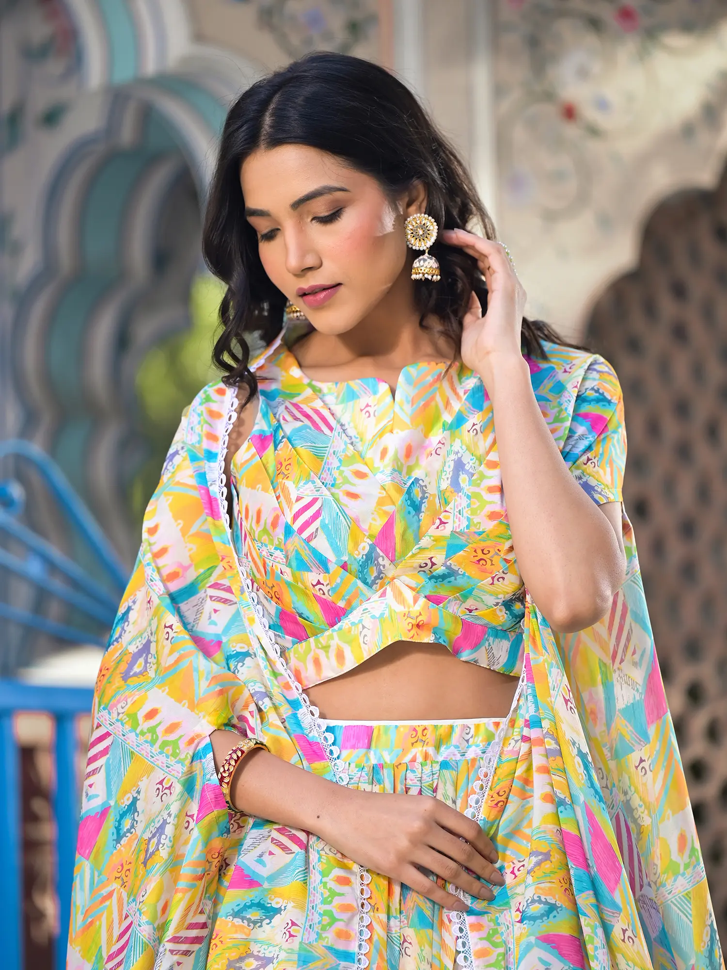 Satin Kaftaan Style Bandhani Printed Salwar Kameez with Gajji Patti on Border