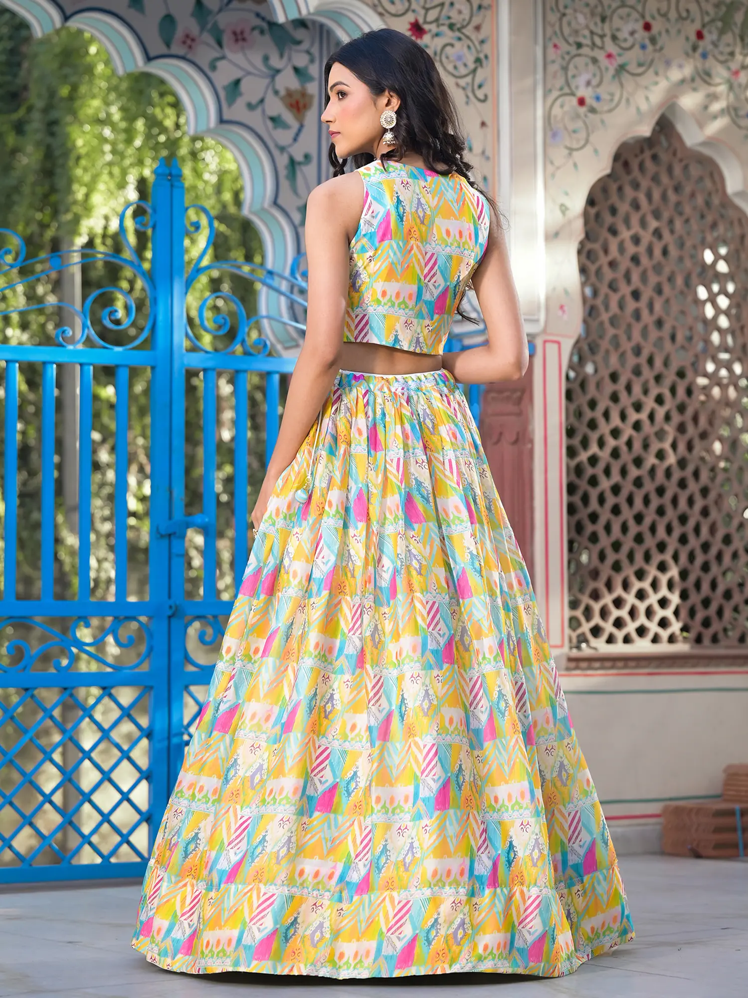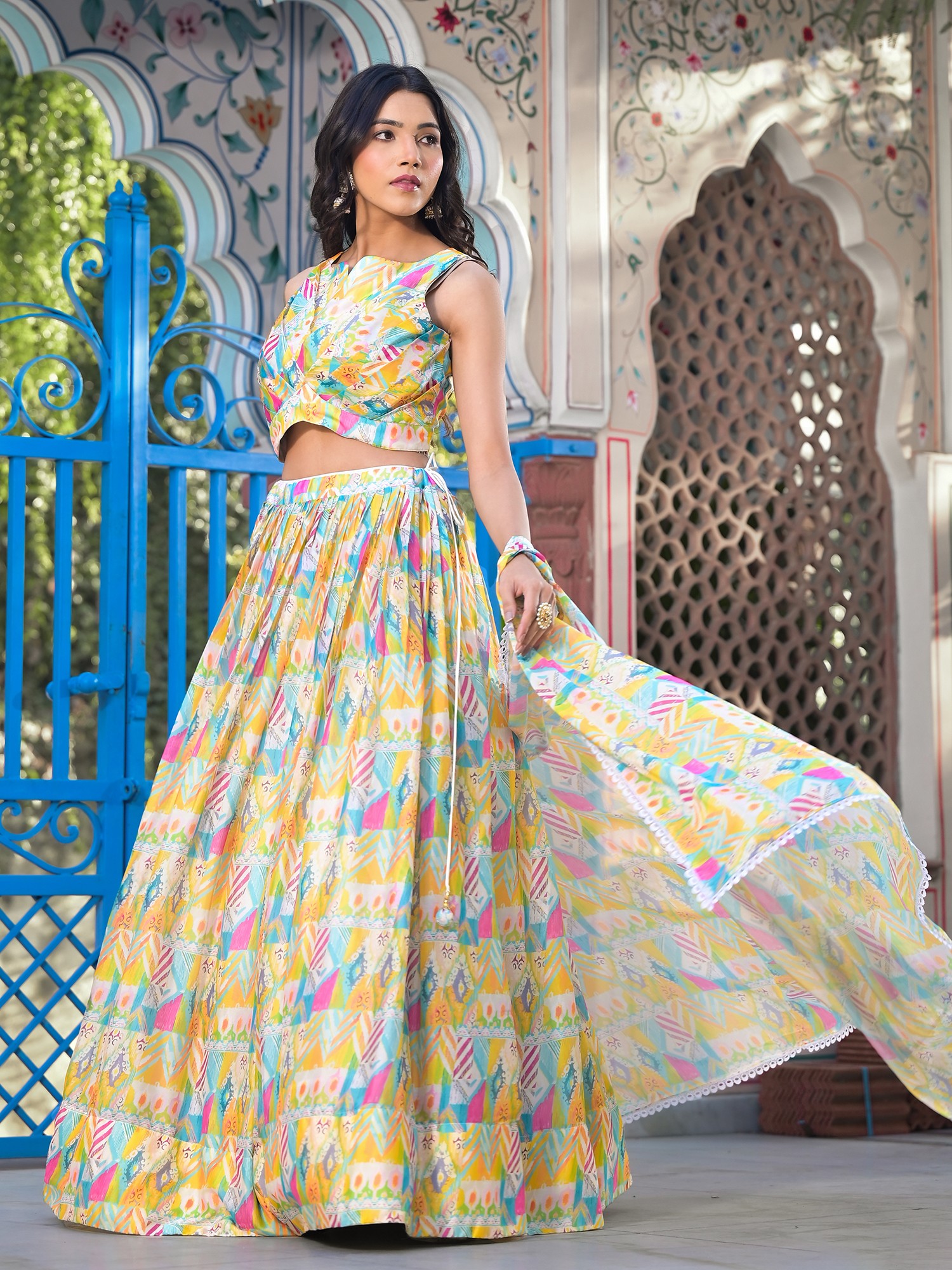 Art-Silk Palazzo Salwar Kameez Suit with Round-Neck and Stripe Printed Dupatta
