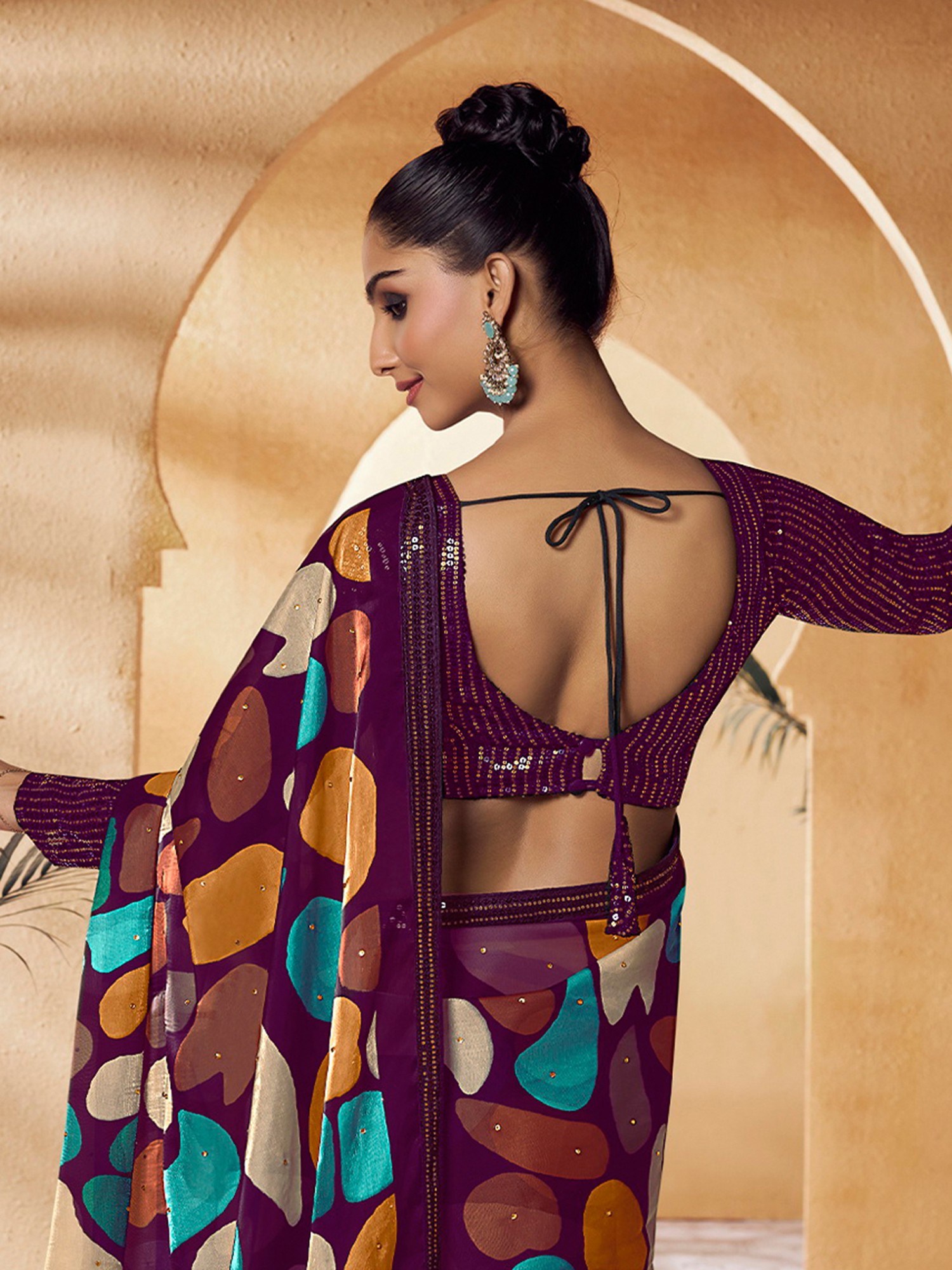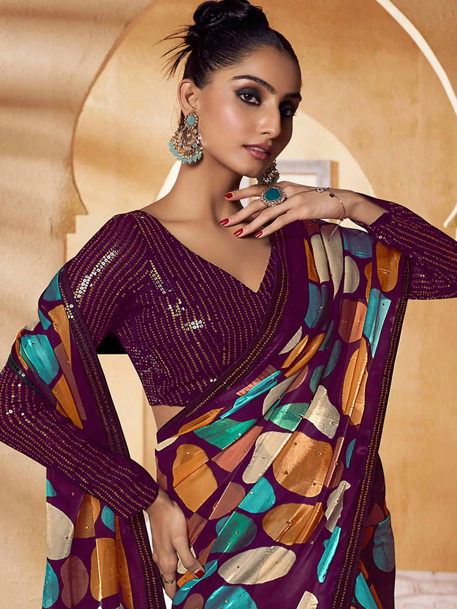 Designer Saree with Metallic Thread Embroidered Paisleys and Patch Border