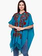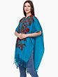 Algiers Blue Cape from Kashmir with Aari Hand-Embroidered Flowers