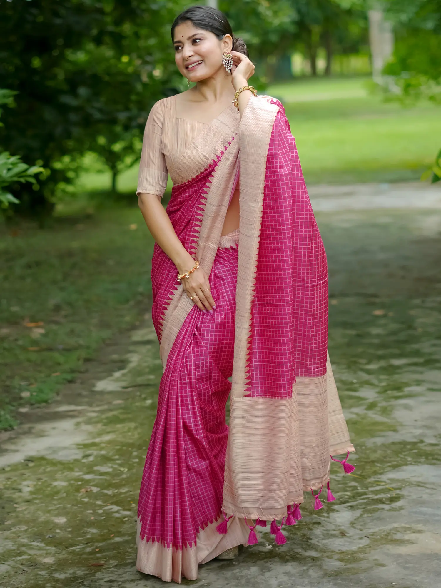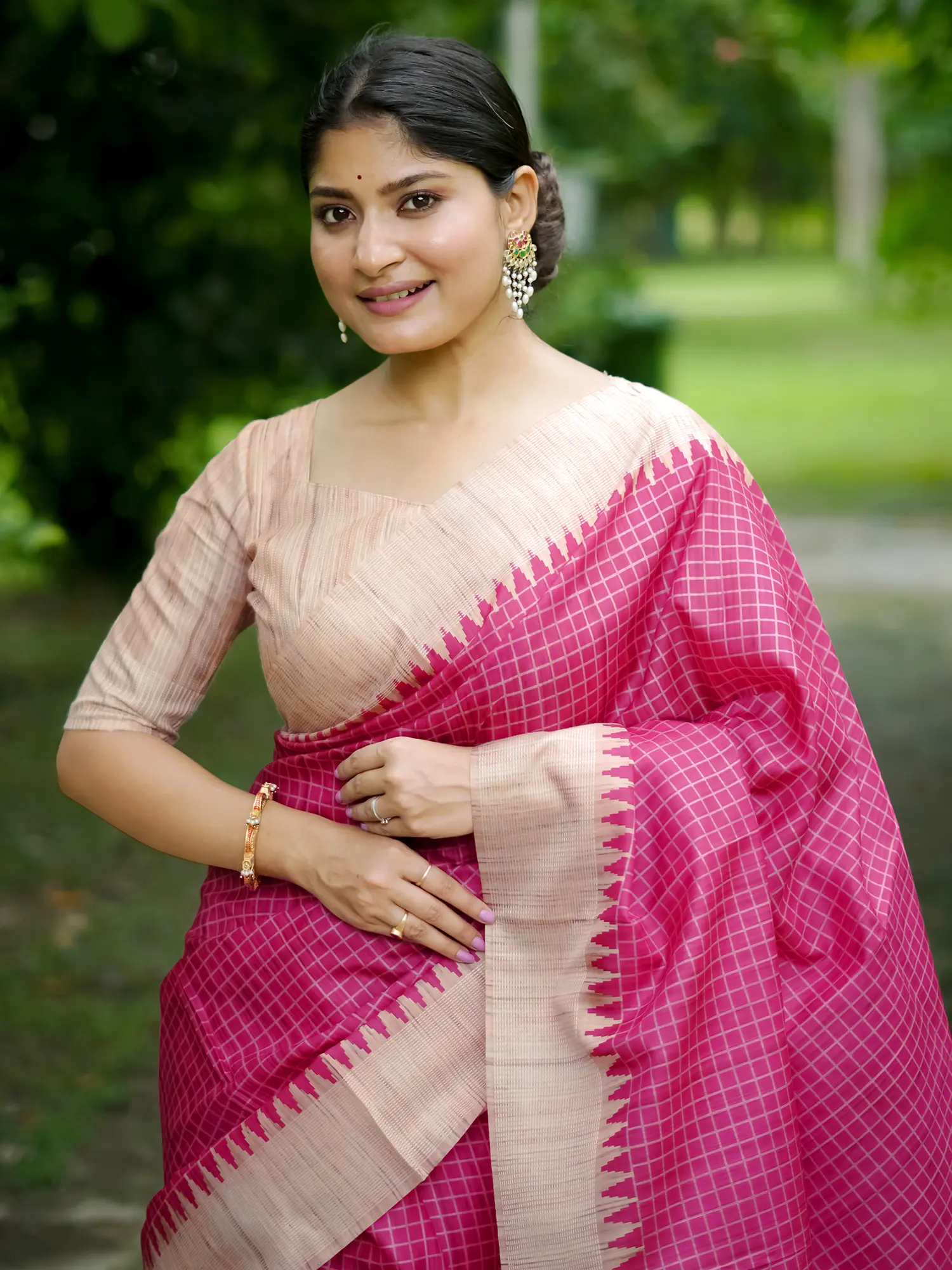 Silk Saree with Zari-Woven Border and Geometric Motifs All-Over