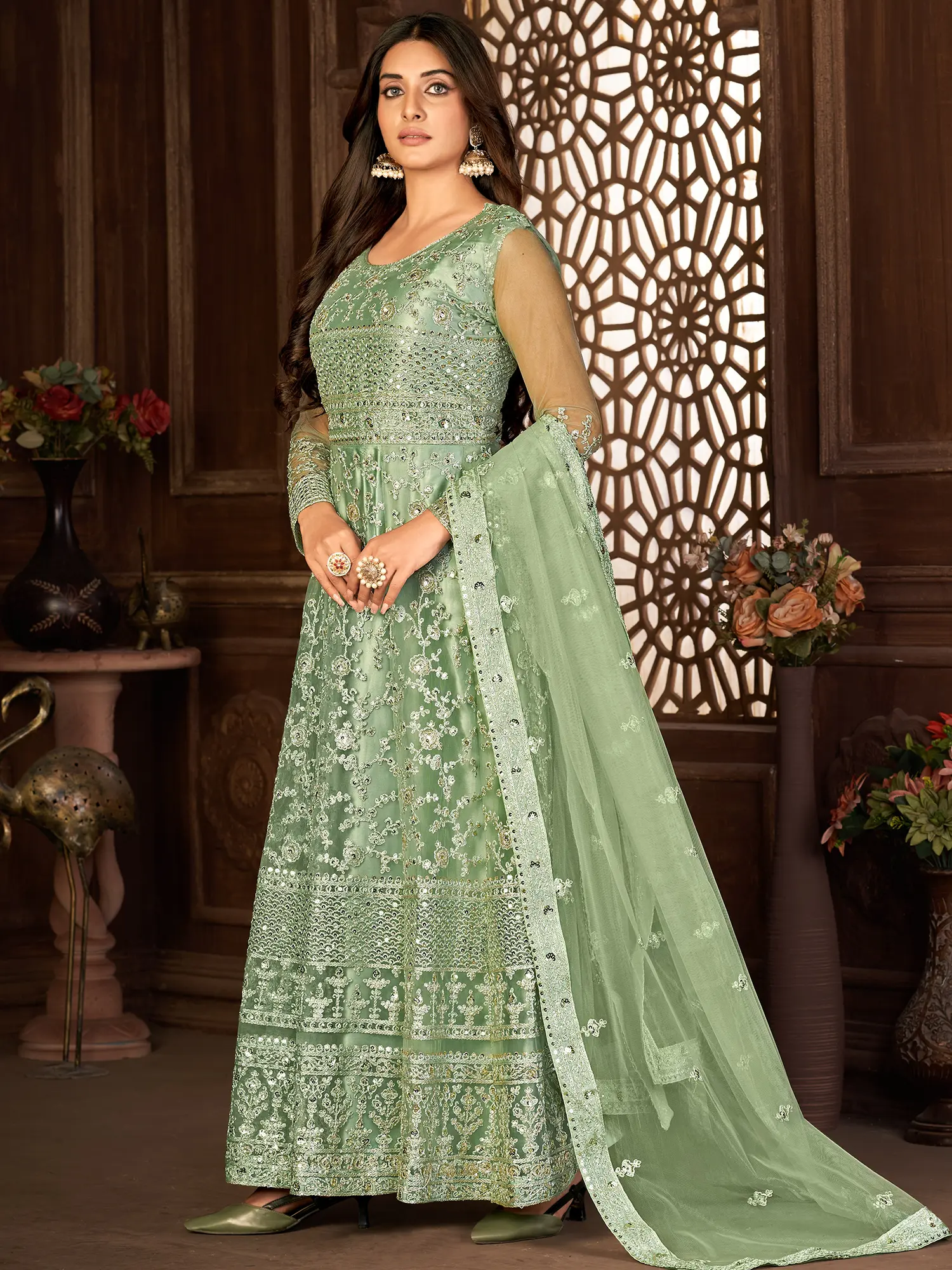 An Exquisite Net Anarkali Suit for Timeless Elegance