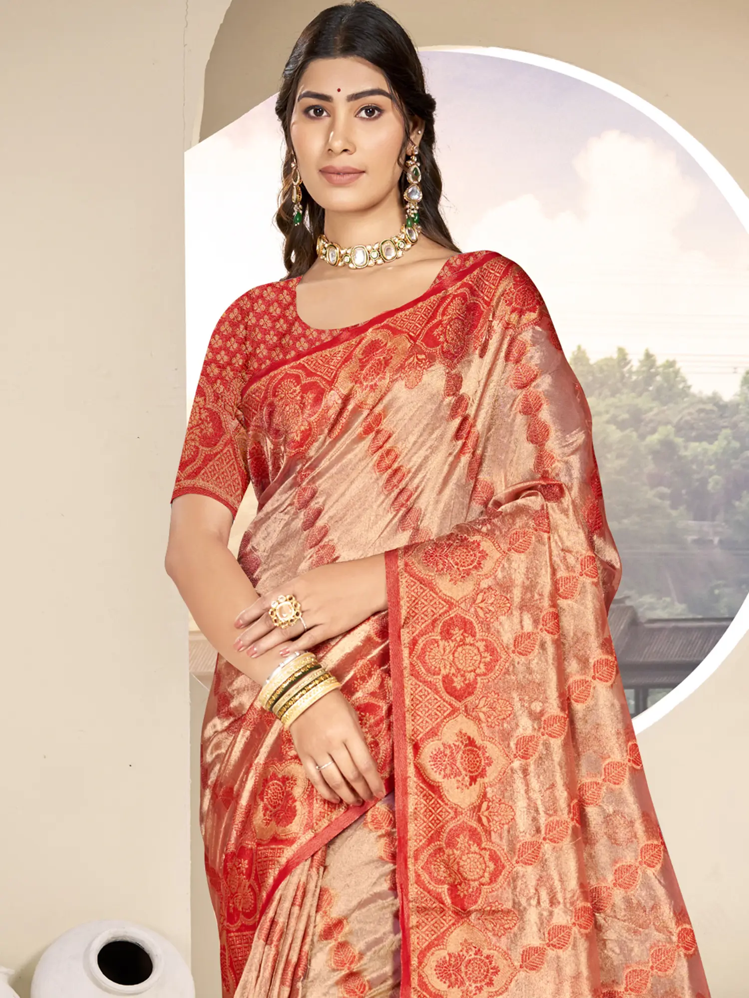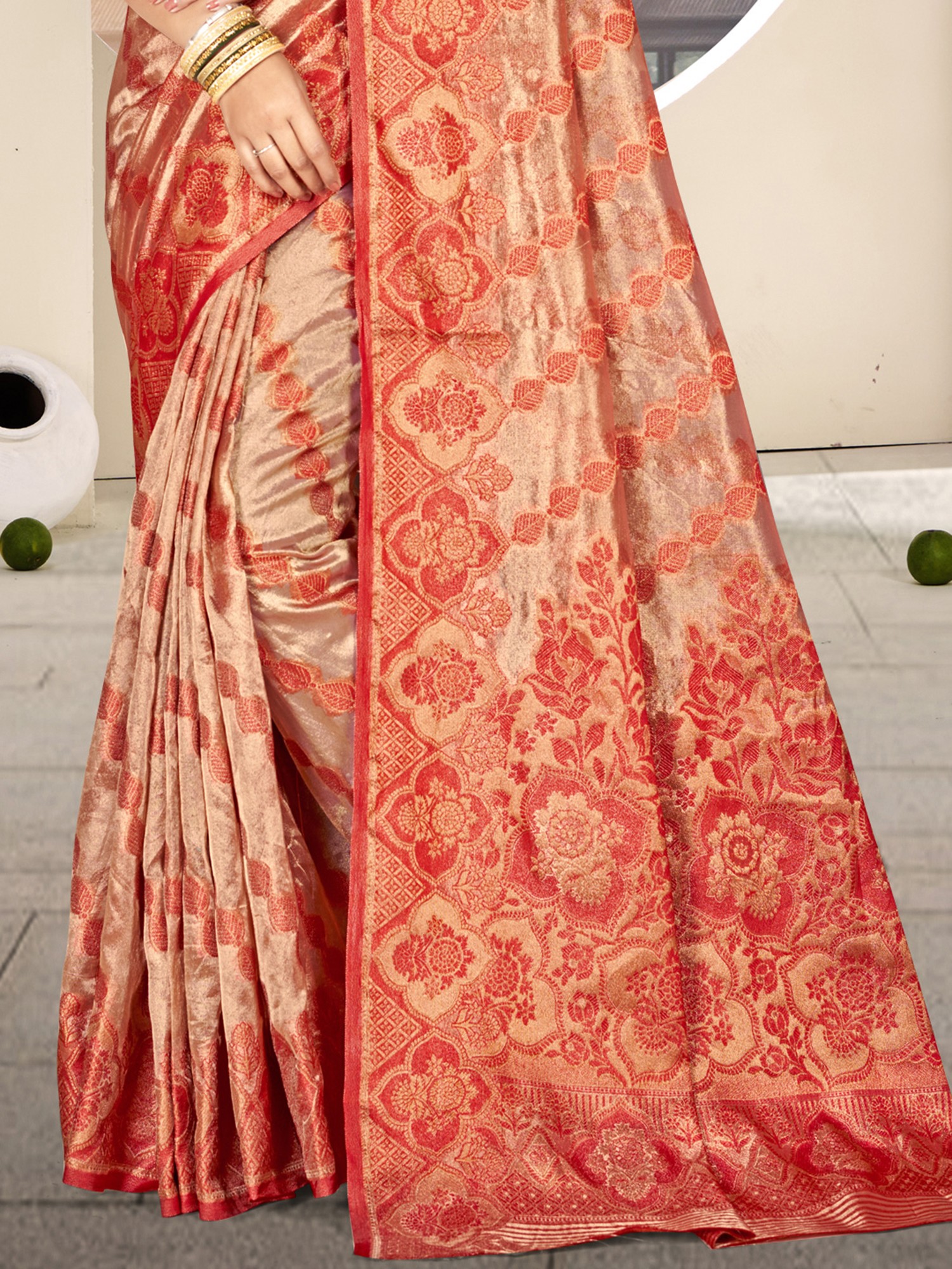Attractive Floral Leaf Motifs Festive Wear Saree With Contrast Tassels Pallu