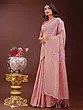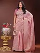Pink Tabby Silk Saree With Elegant Floral Print Intricate Hand Work Premium Designer Festive Occasion Drape