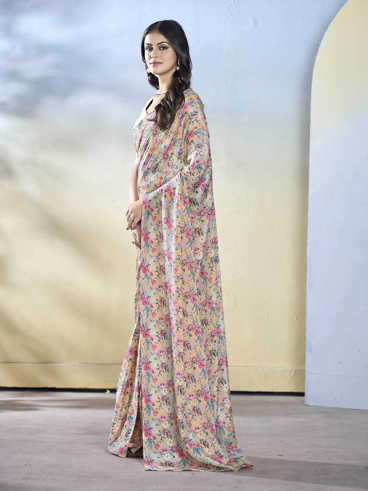 Baroque-Rose Dola Silk Saree with Dabu Block Printed Motifs and Zari Woven Paisley-Floral Border