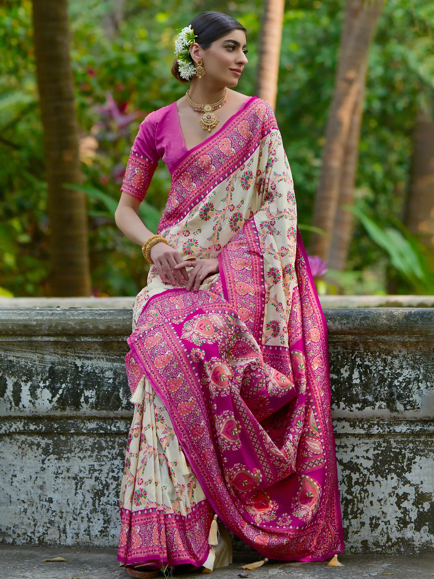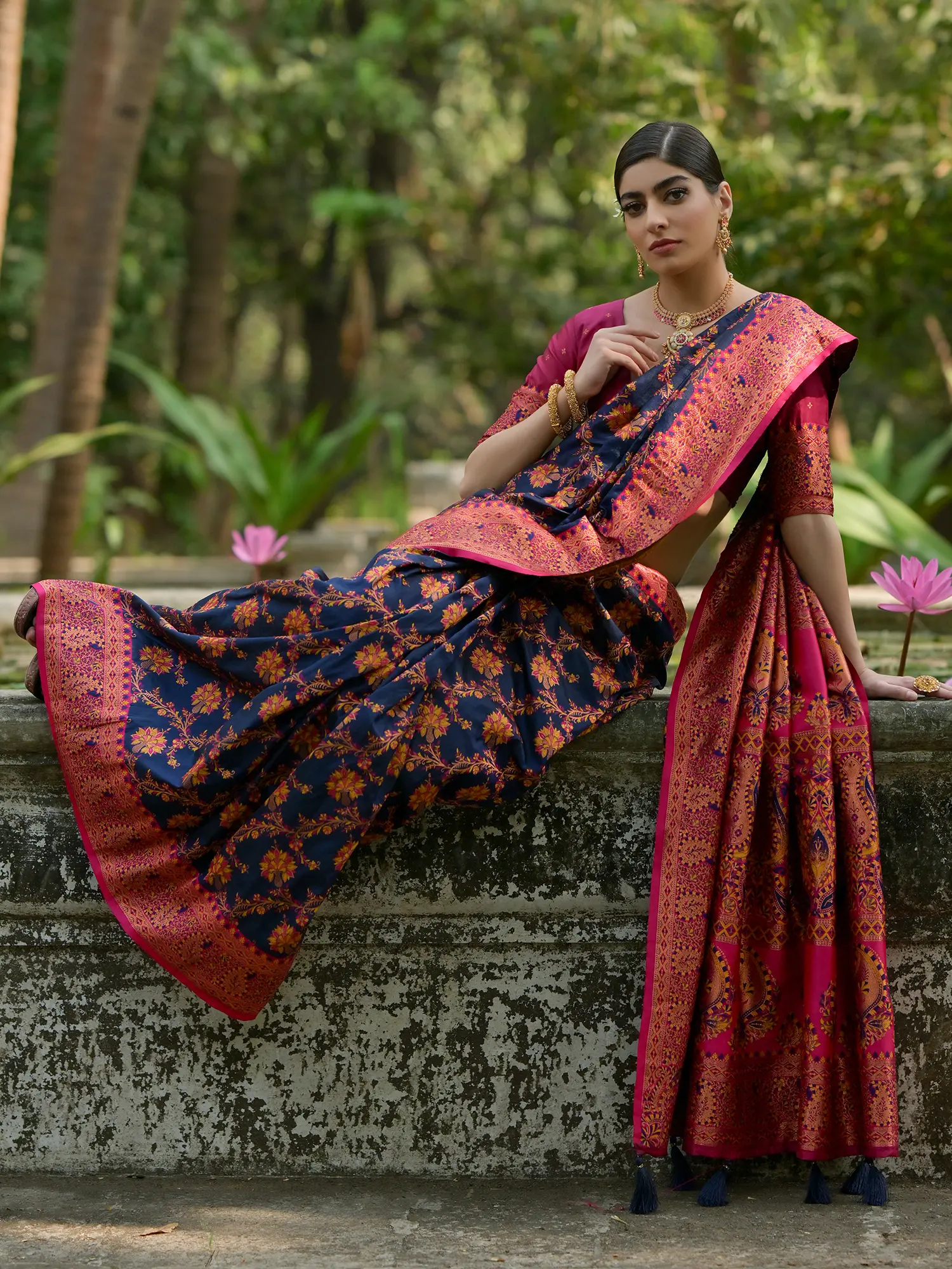 Festival-Fuchsia Designer Saree with Heavy Thread-Sequins Embroidered Flowers and Zari Work