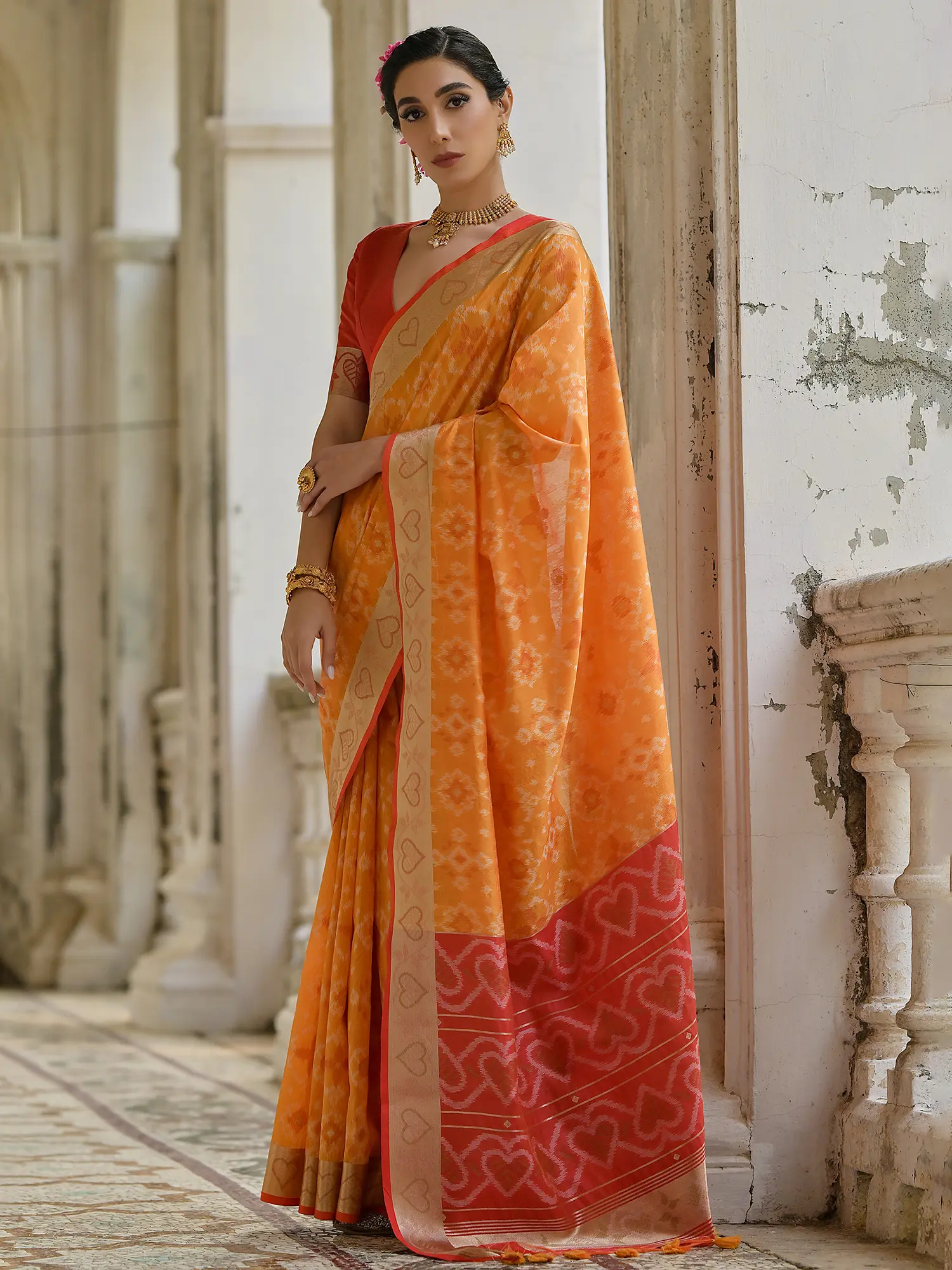 Uppada Sari from Bangalore with Zari-Woven Leaves