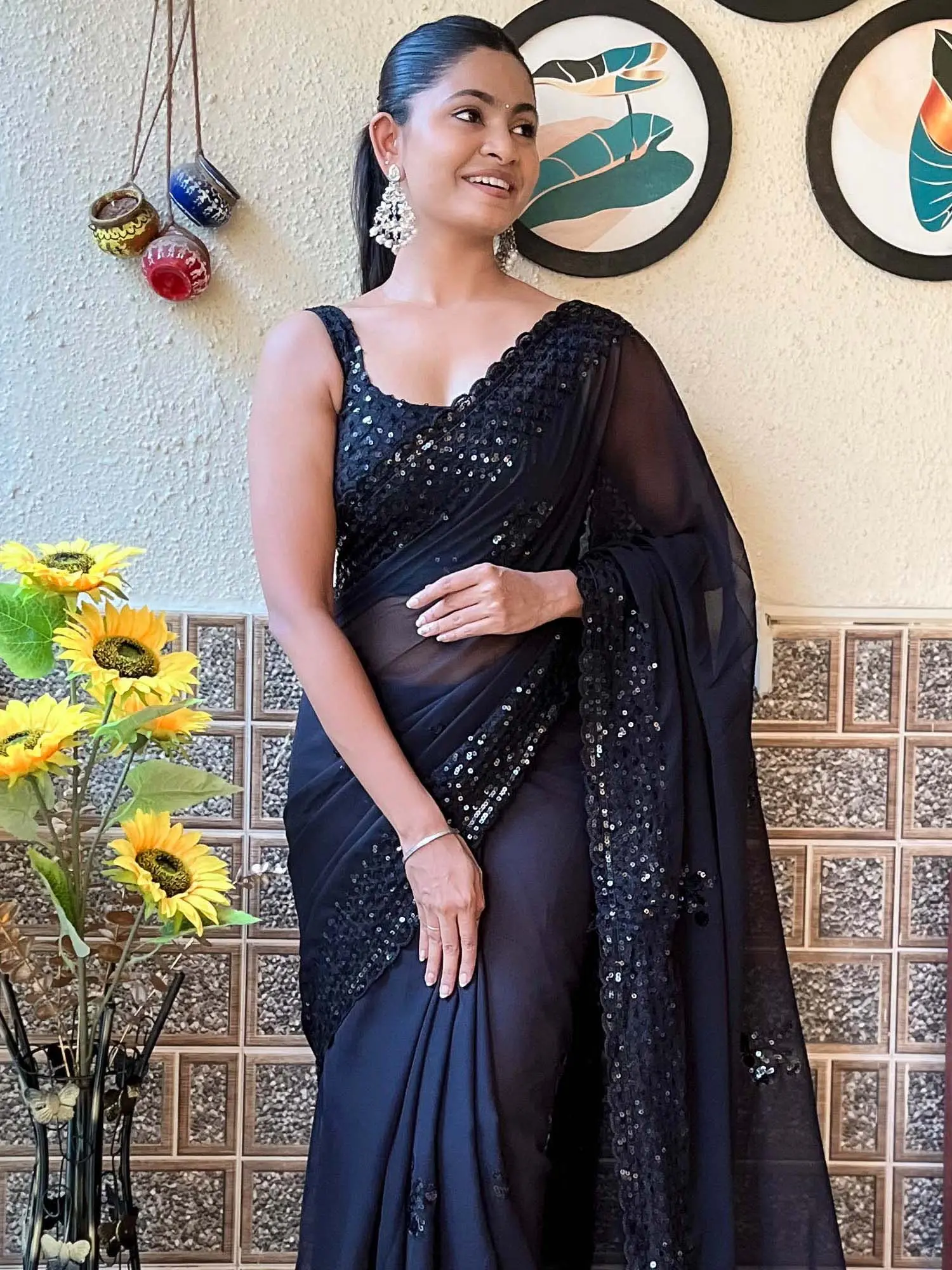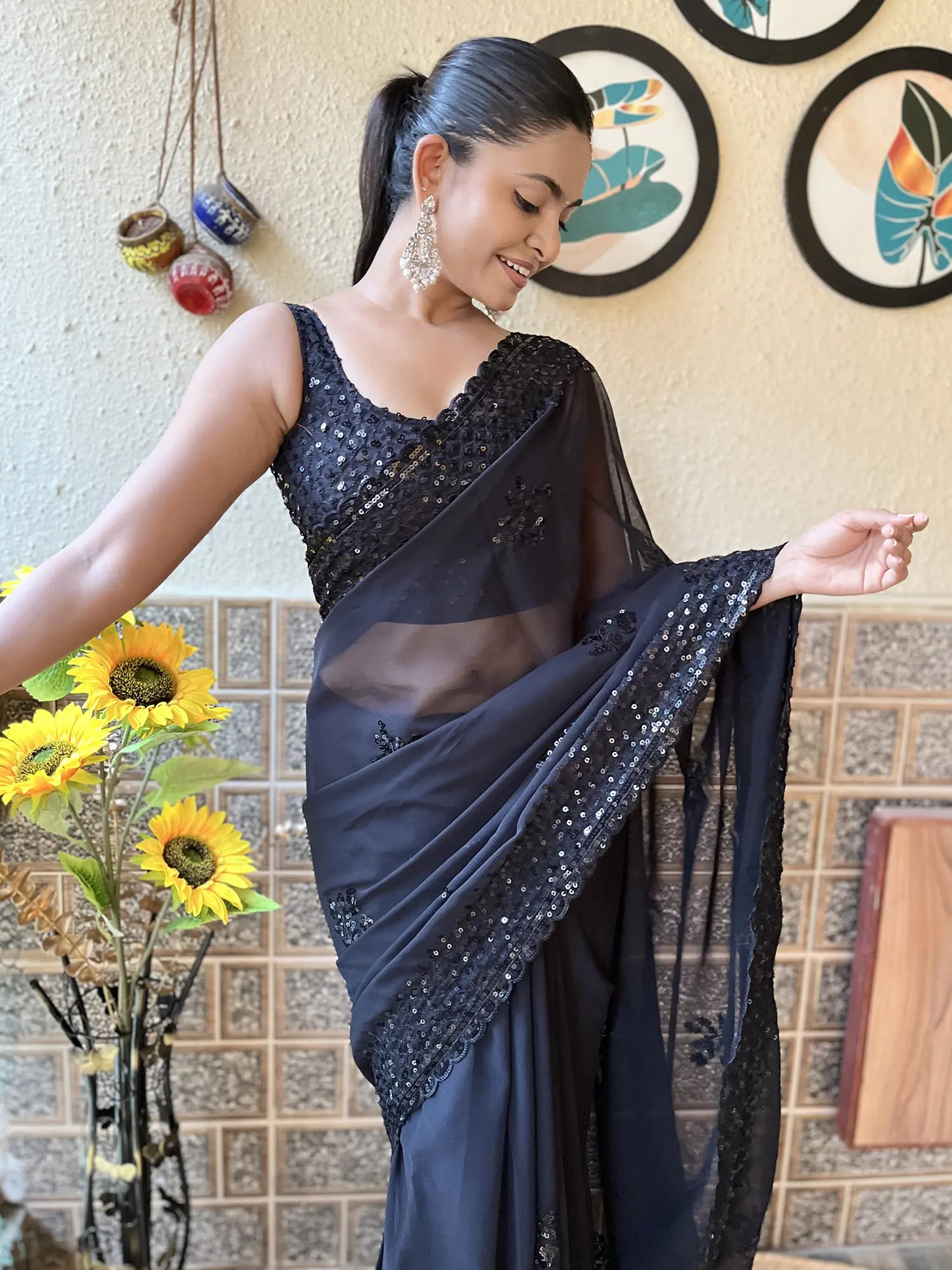 Sea-Storm Designer Party Wear Georgette Sequin Saree
